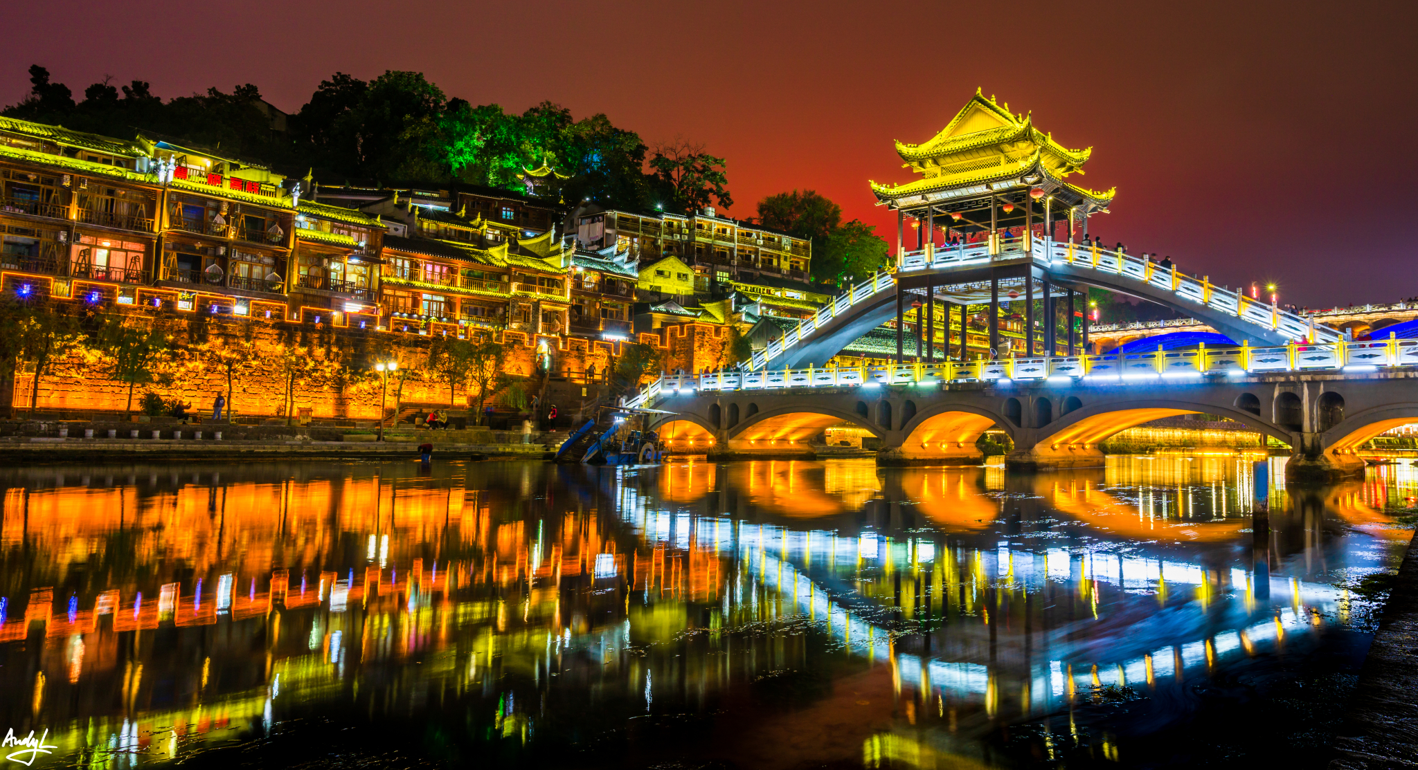 晚上的雪桥,被灯光点缀后,这里依然是我认为凤凰最美的地方。