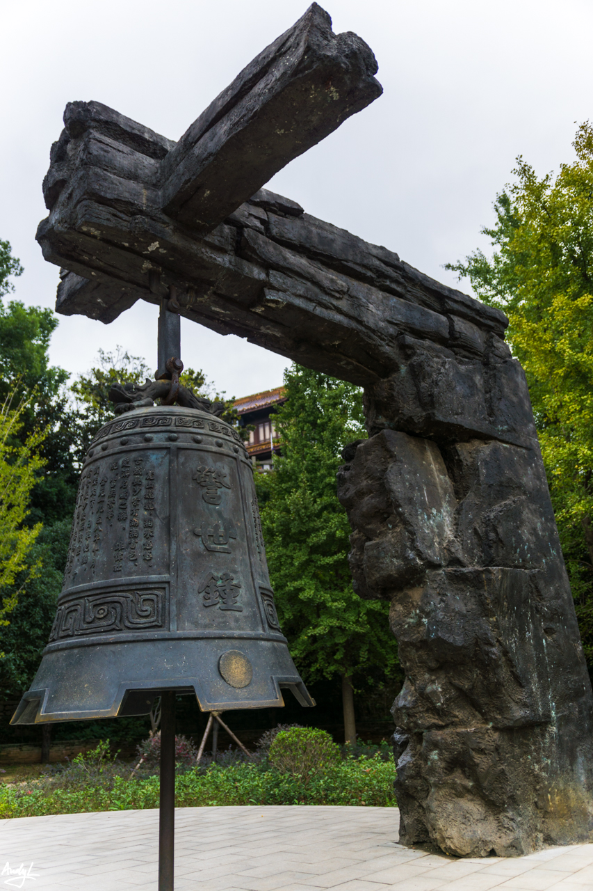 阁前立有“警世钟”,教导后人牢记那场侵略和那场大火对长沙带来的毁灭性伤害。