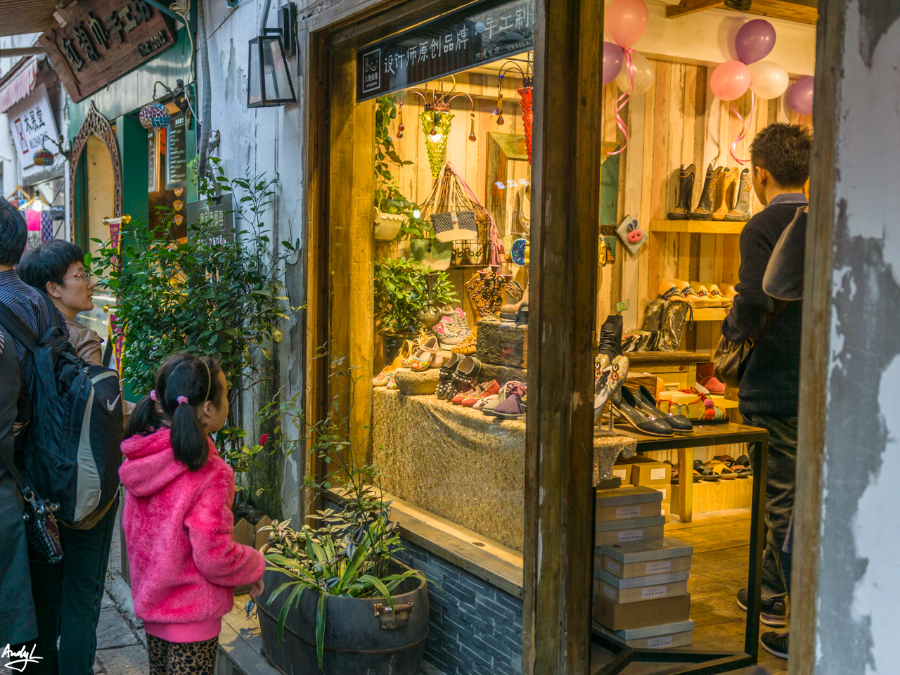 老爸老妈也被沿街的店铺吸引着