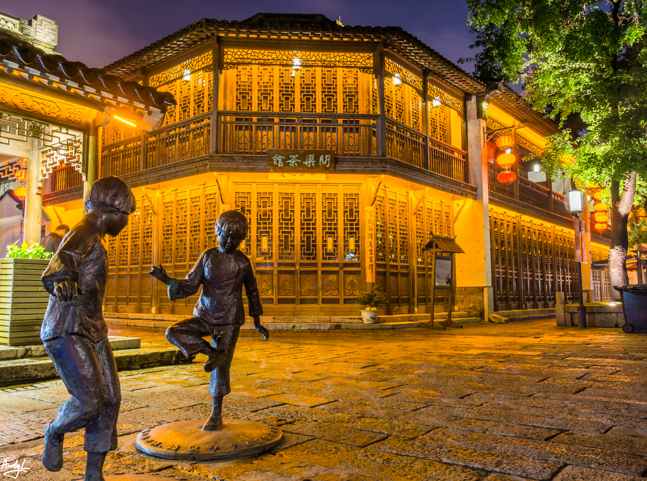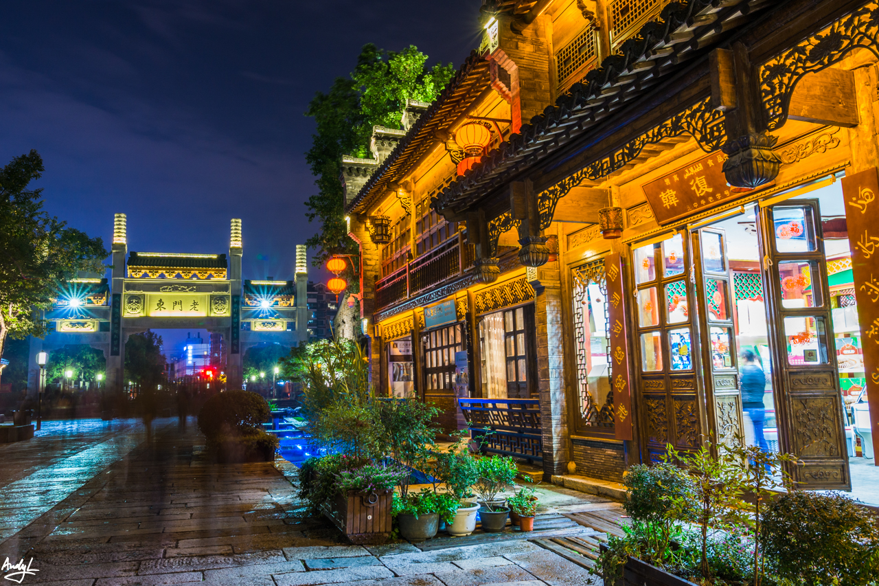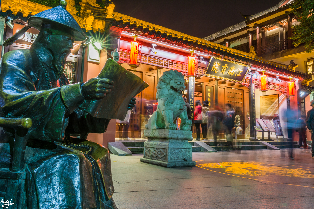 要说南京的夜景,还要算是夫子庙秦淮河风光带最好(我这也是蚂蜂窝上临时抱佛脚看来的)。首先来到的是中华门瓮城,从外面看看比较一般,便没花钱进去看。于是开始误打误撞地乱走,突然发现周遭古色古香的建筑多了起来。(长曝光消灭街上所有游客)