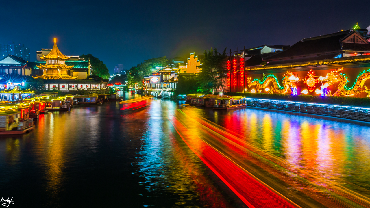 夫子庙门前的秦淮河,河面开阔,这里也是秦淮河游船的码头,这里也是整个景区人最多最集中的地方。