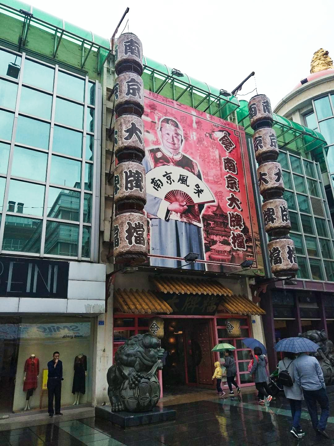 第二天早上,起得很晚,应该是前段时间累坏了。爬起来,吃早中饭。到了南京,自然不能不吃鸭血粉丝。通过万能的朋友圈,南京的小伙伴一致推荐回味鸭血粉丝,于是来到离我住处最近的狮子桥美食街。上午的南京,天空阴沉,下着小雨。并不是旅游的好天气。