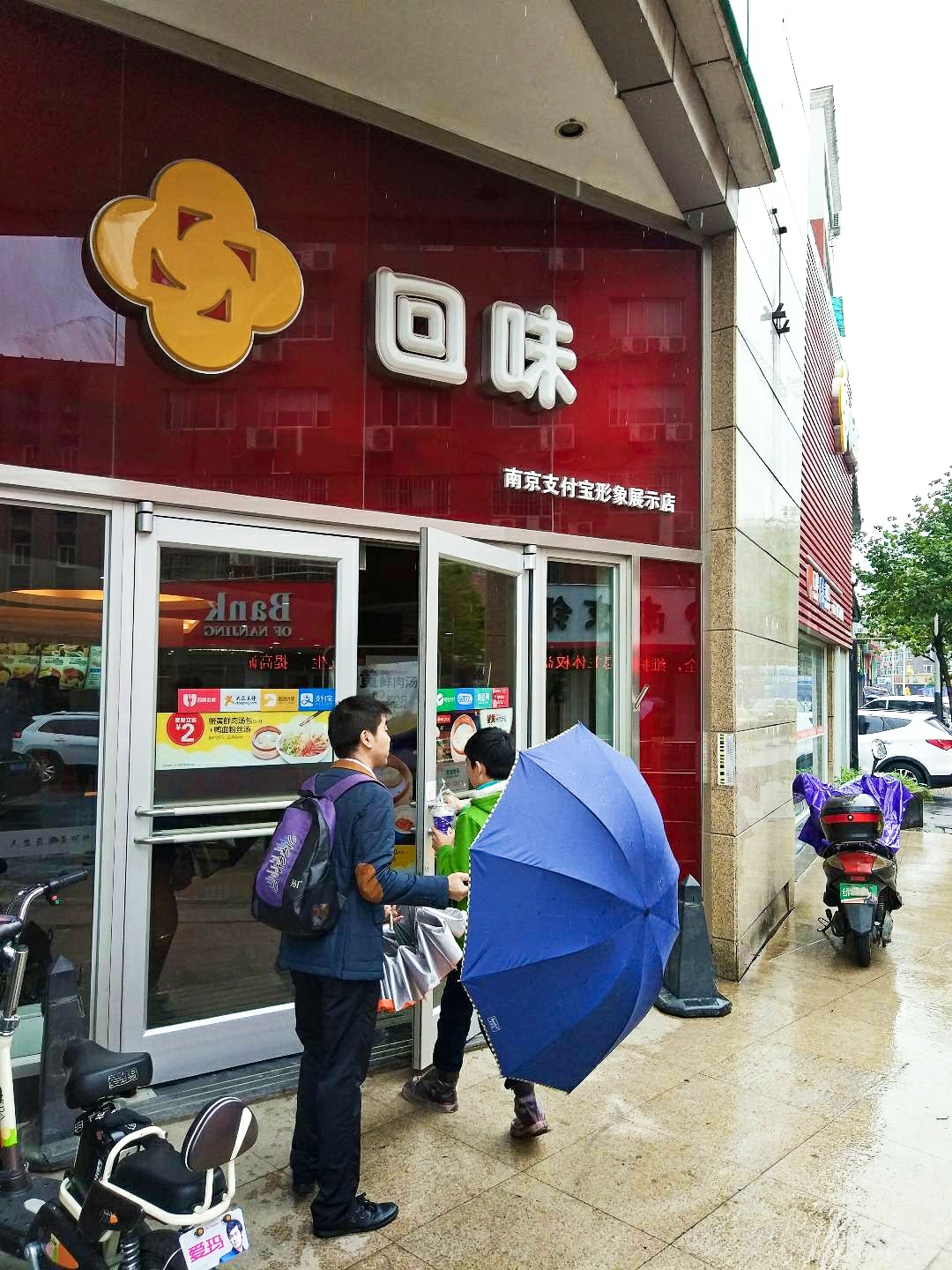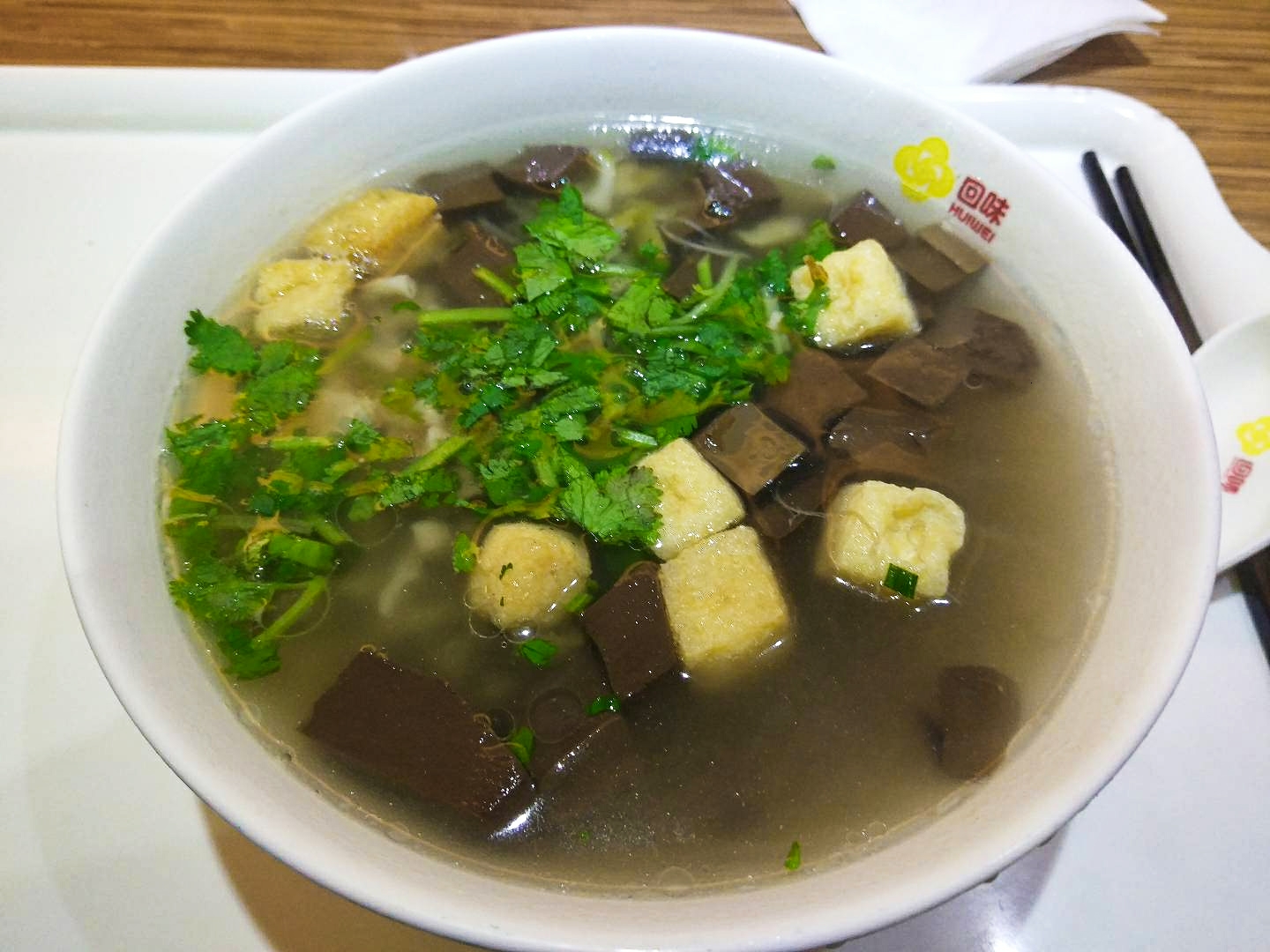 回味鸭血粉丝,已经被做成了连锁品牌,类似上海的小杨生煎。虽然下着雨,但是店里的人还不少,南京人对鸭的偏爱可见一斑,据说南京市民平均每天要吃掉8万只鸭子