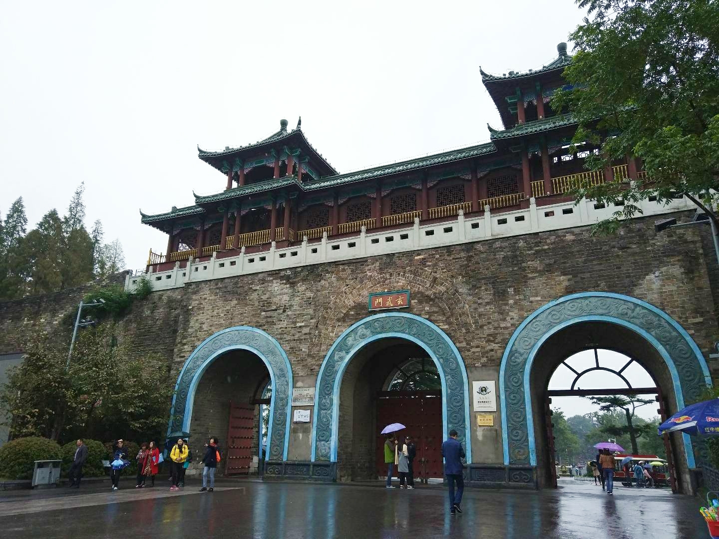 吃饱喝足,步行去玄武湖公园,从狮子桥走到玄武门,大概需要15~20分钟的样子吧。玄武湖公园是免费开放的,类似于杭州西湖。雨一直没停,而且有变大的趋势,为了不把相机淋湿,以下图片均是有手机拍摄,画质略差。