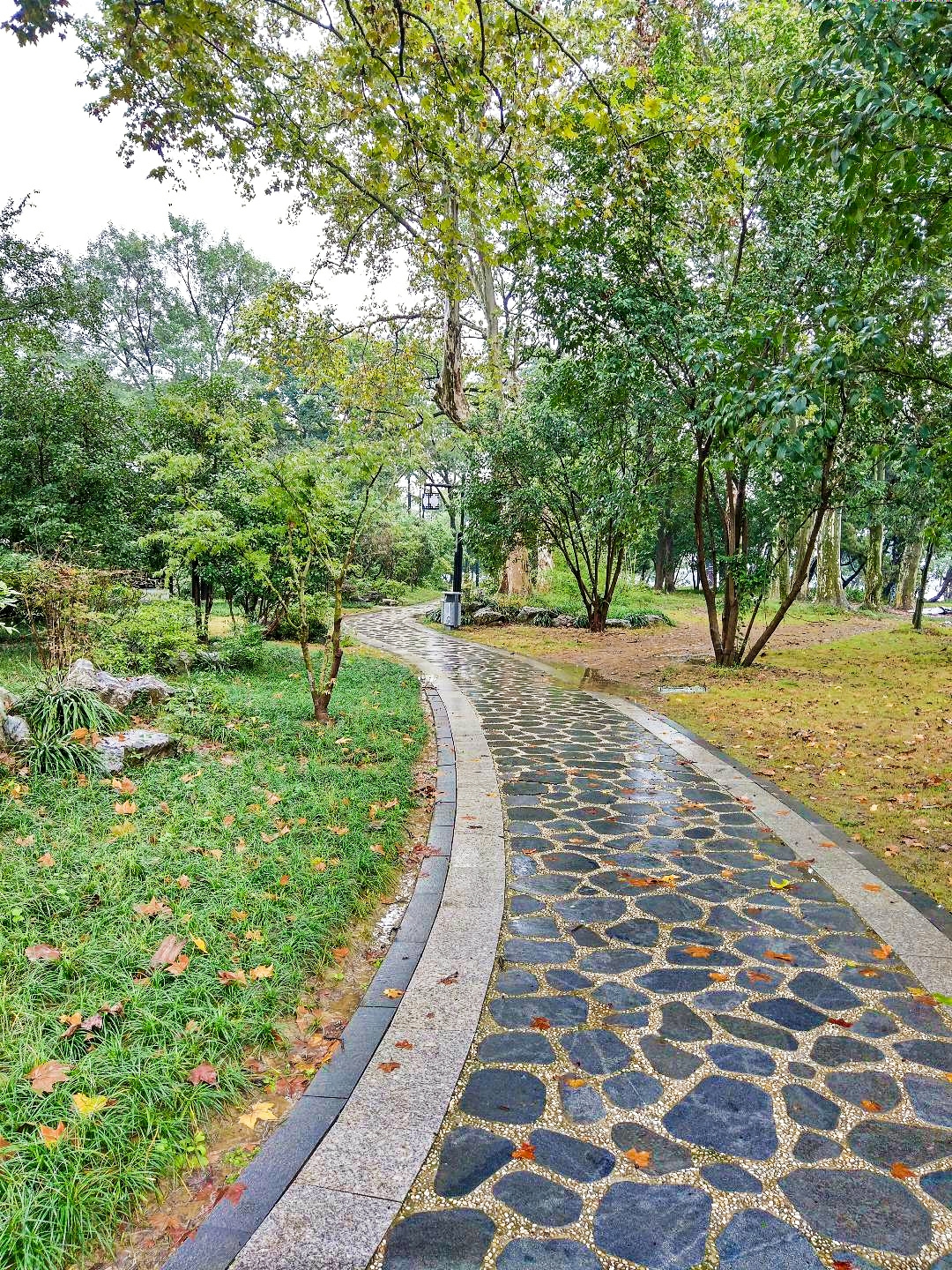 从湖边的亲水木栈道,到岛中央的绿地,眼前所见都是绿色,加上雨水的冲刷,空气相当好
