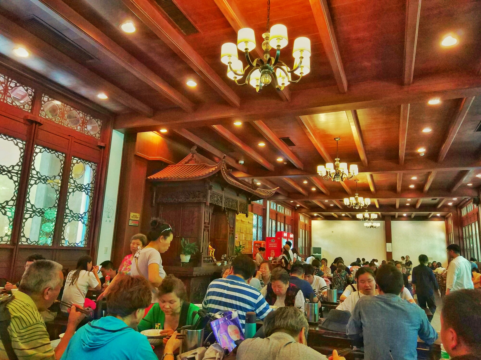 中午本想去吃杭州的新白鹿餐厅,可是等我们到的时候,门口已经人山人海,要等几十桌才能吃到,无奈放弃,去边上小吃街吃了碗片儿川,说实话,不好吃!和上次来的时候菊英面店的片儿川比,差远了。