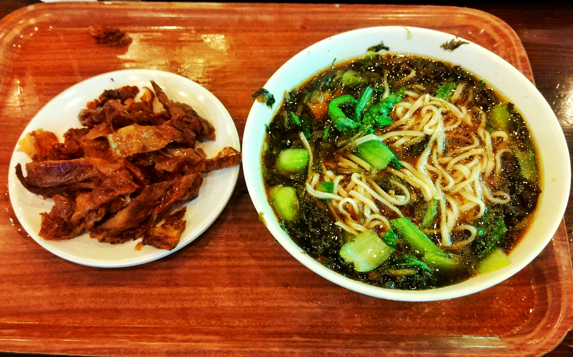 进面馆后需先点单取号,然后根据顺序叫号取餐,这里的号叫得比较慢,我们前面有20多号,大约等了15分钟。这段时间正好是饭点,不断有人落座,整个面馆瞬间客满。
