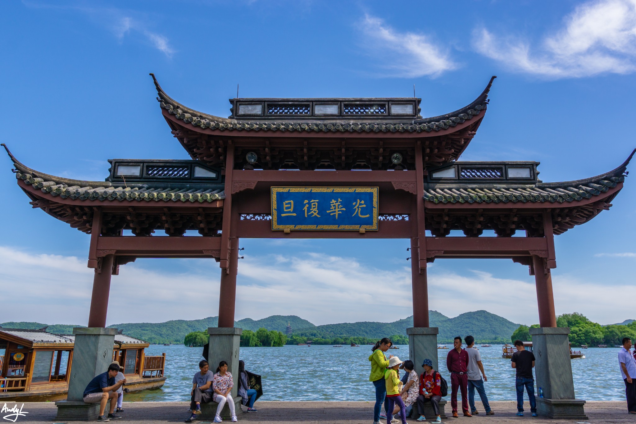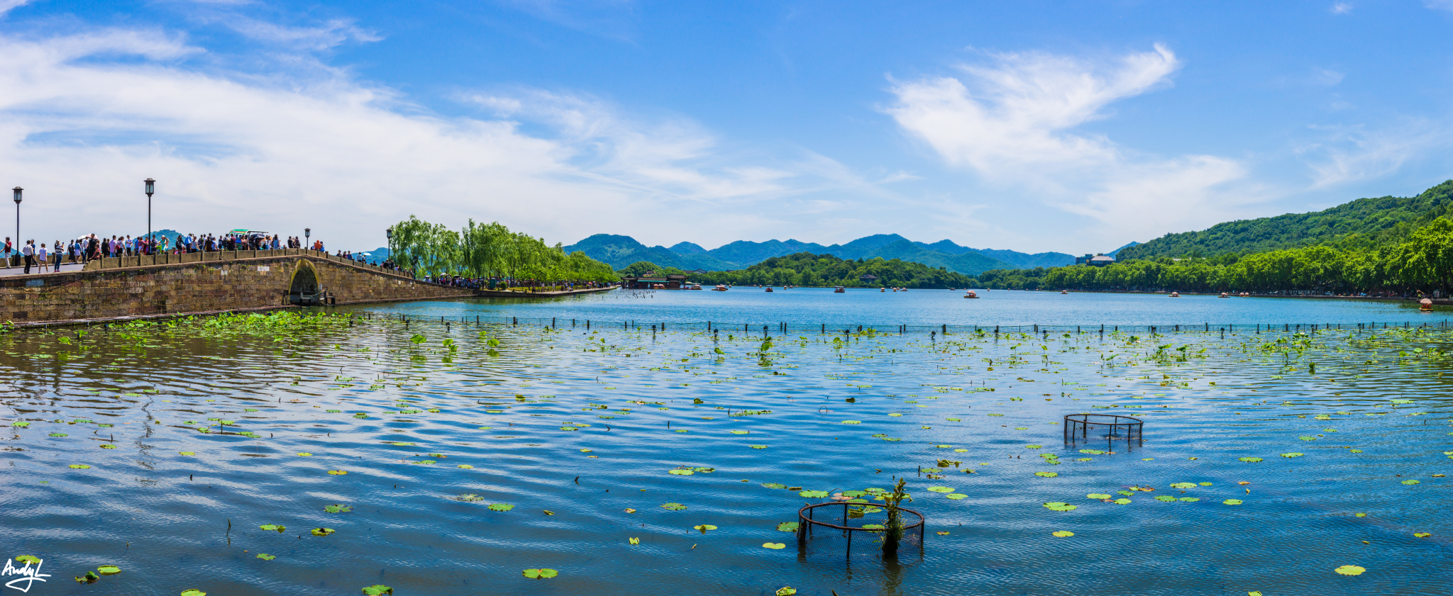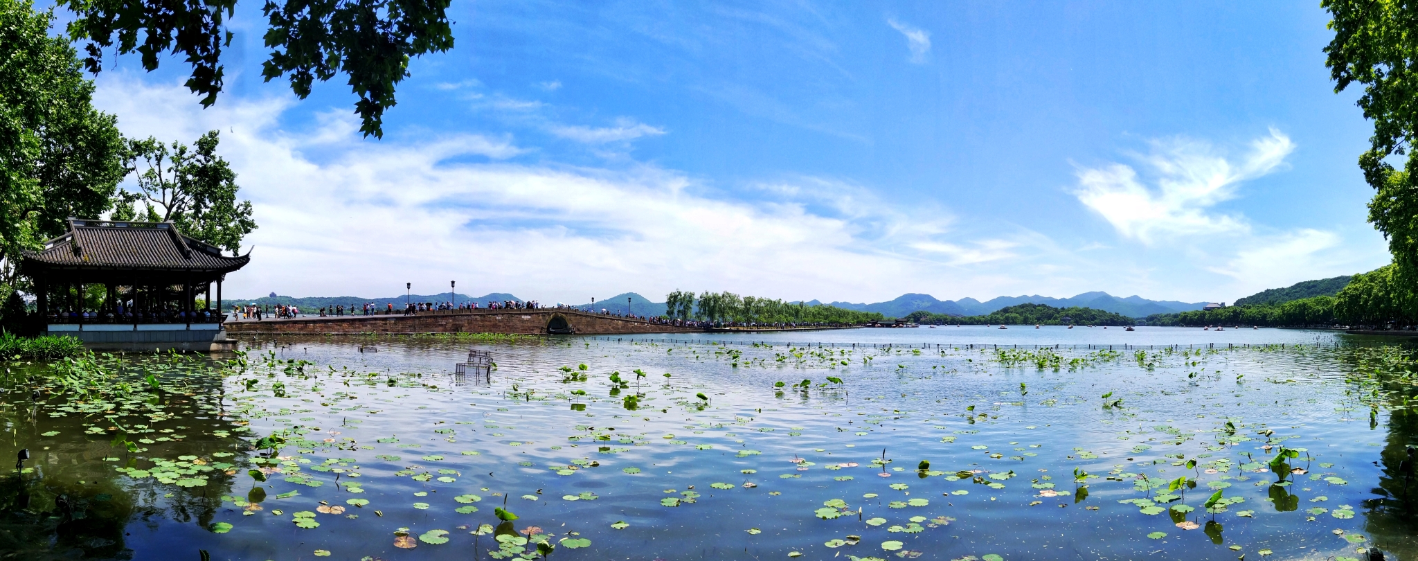 断桥残雪——西湖十景之一,但是在这个季节。。。好吧,只有断桥,没有残雪,还有人人人人人。。。天气相当好,天空晴朗,视野开阔,拍出的照片也大气,不过,这温度,这大太阳,只有我自己知道。