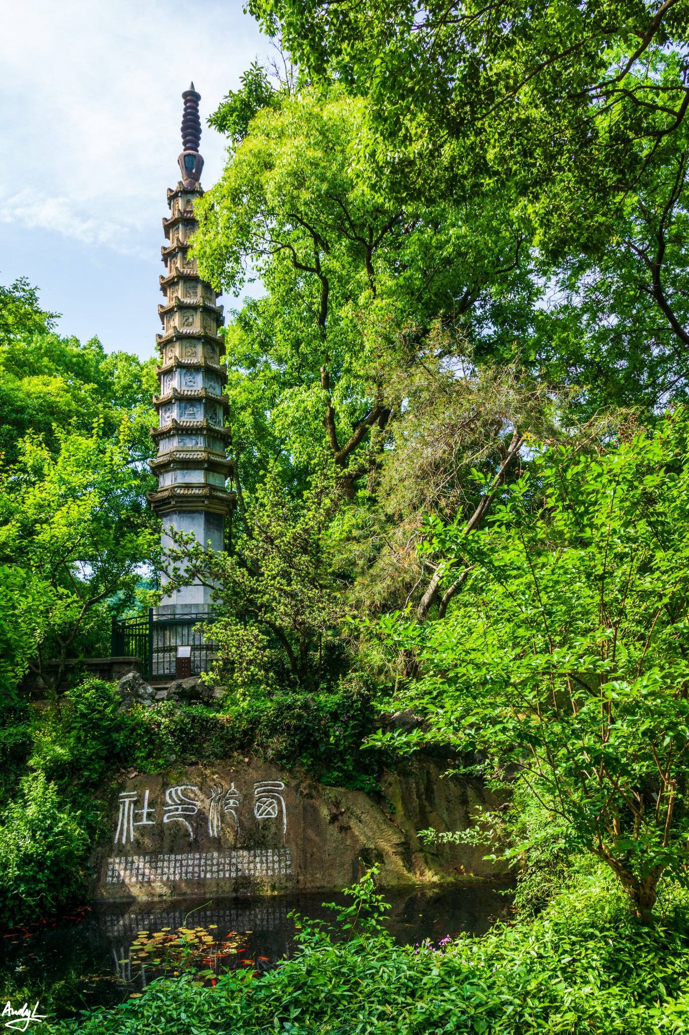 离开孤山,沿北山街来到岳庙,这里已经是游人摩肩接踵,再加上杭州32度的高温,让人燥热不堪。当然,岳庙不在我的游玩名单之内。这次的目的地是岳庙后面的宝石山。在岳庙西门处,有一条小道名为栖霞岭,路不宽,因为这里不是旅游团的固定线路,所以游客极少。