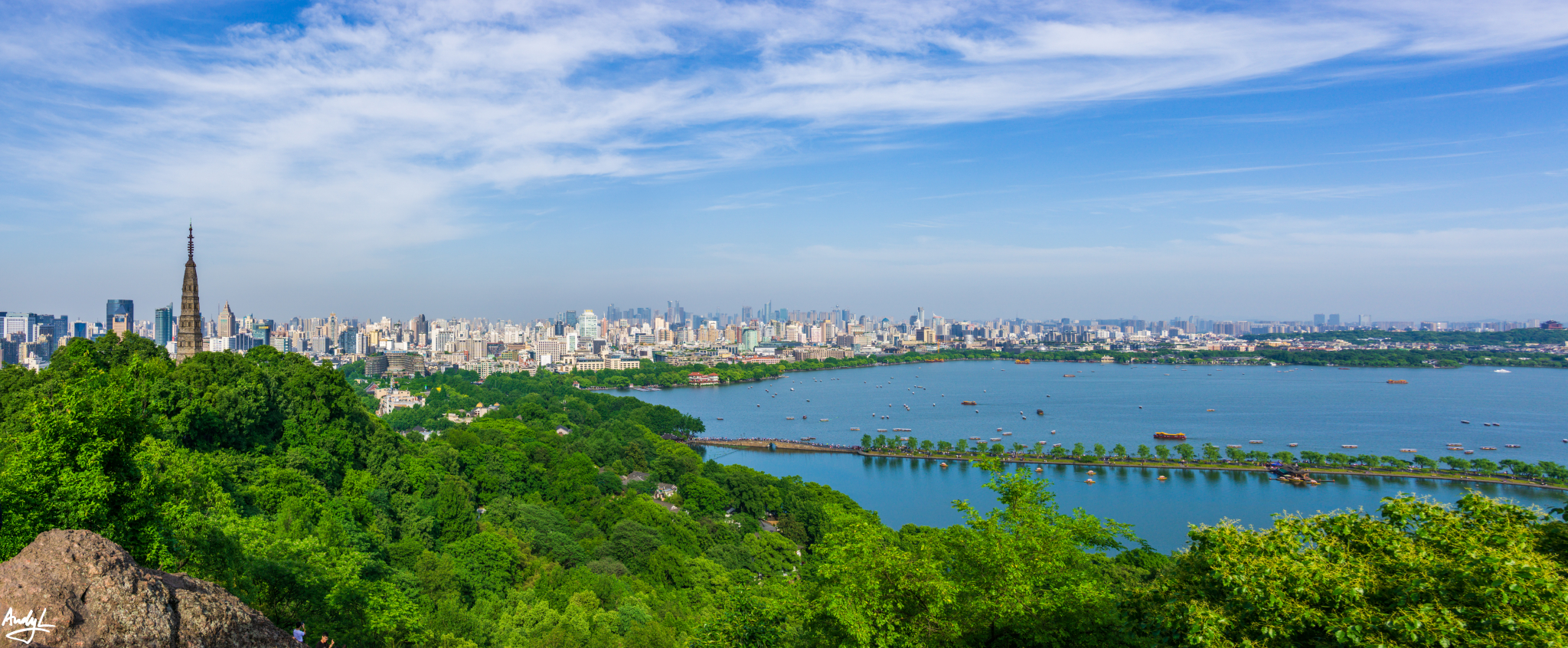 这里可以俯瞰大半个西湖,若是在凉爽的天气,坐在岩石上看着这等风景,绝对是惬意的事情。