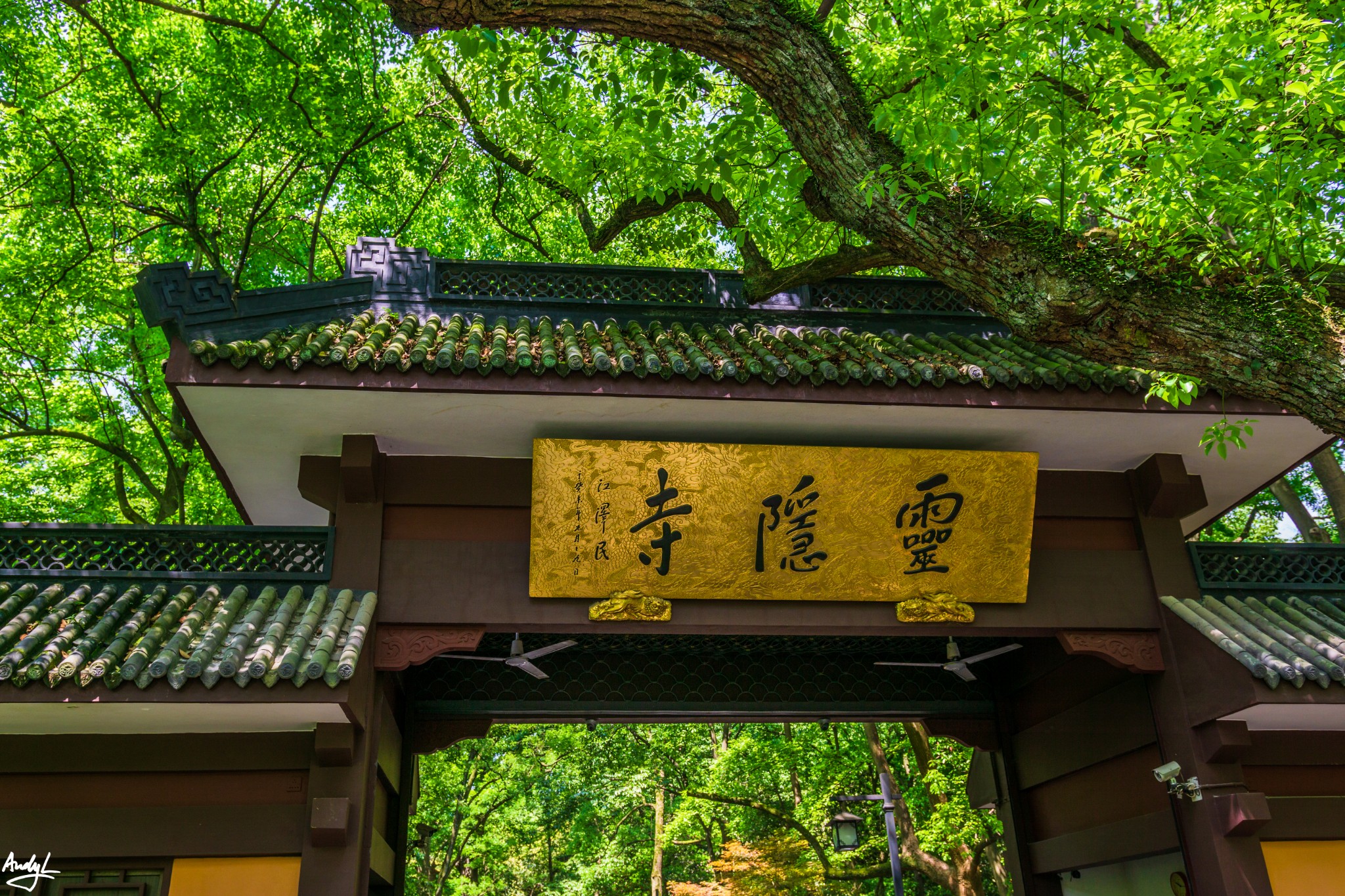 沿着北山街一路骑行,虽然温度在30度左右,但是好在这一路都是林荫道,不算太热,过了岳庙,沿灵隐路一直骑到底就到灵隐寺了。
