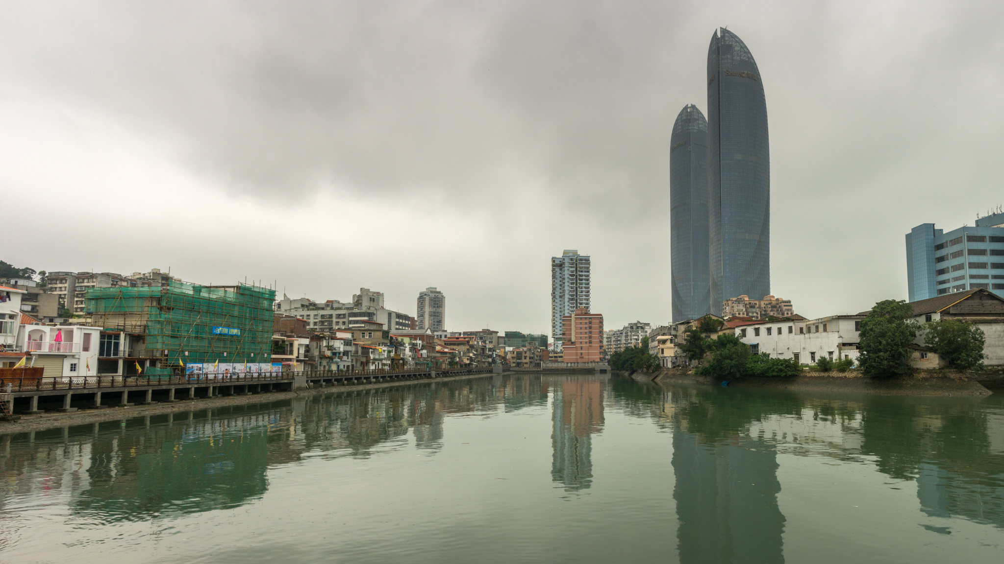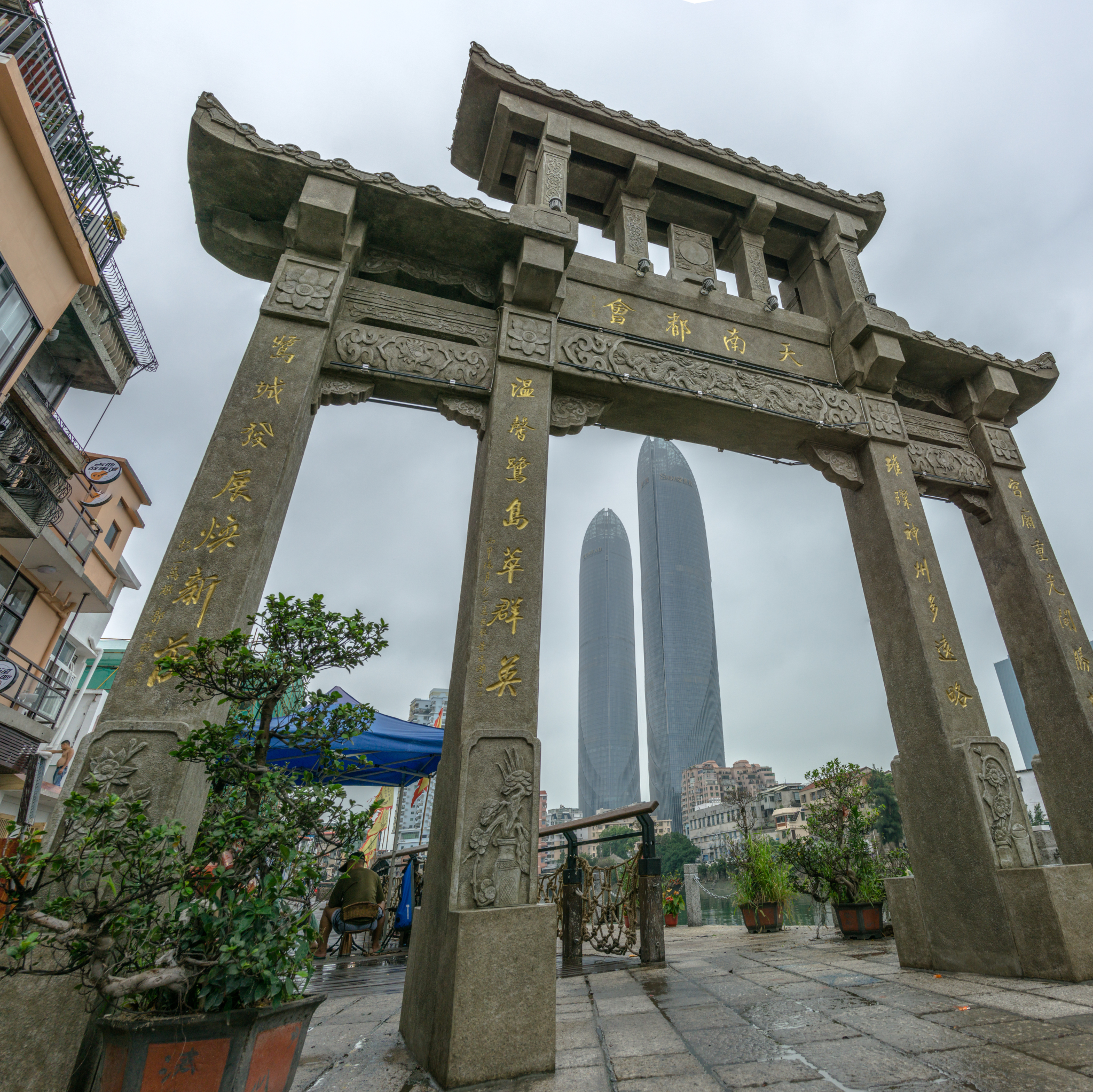 在沙坡尾附近,你还是能感受到厦门老城区的风貌,没有经过任何修饰的老式骑楼,海边的老房子和牌坊,和远处的双子塔对应,诉说着厦门的过去和现在。