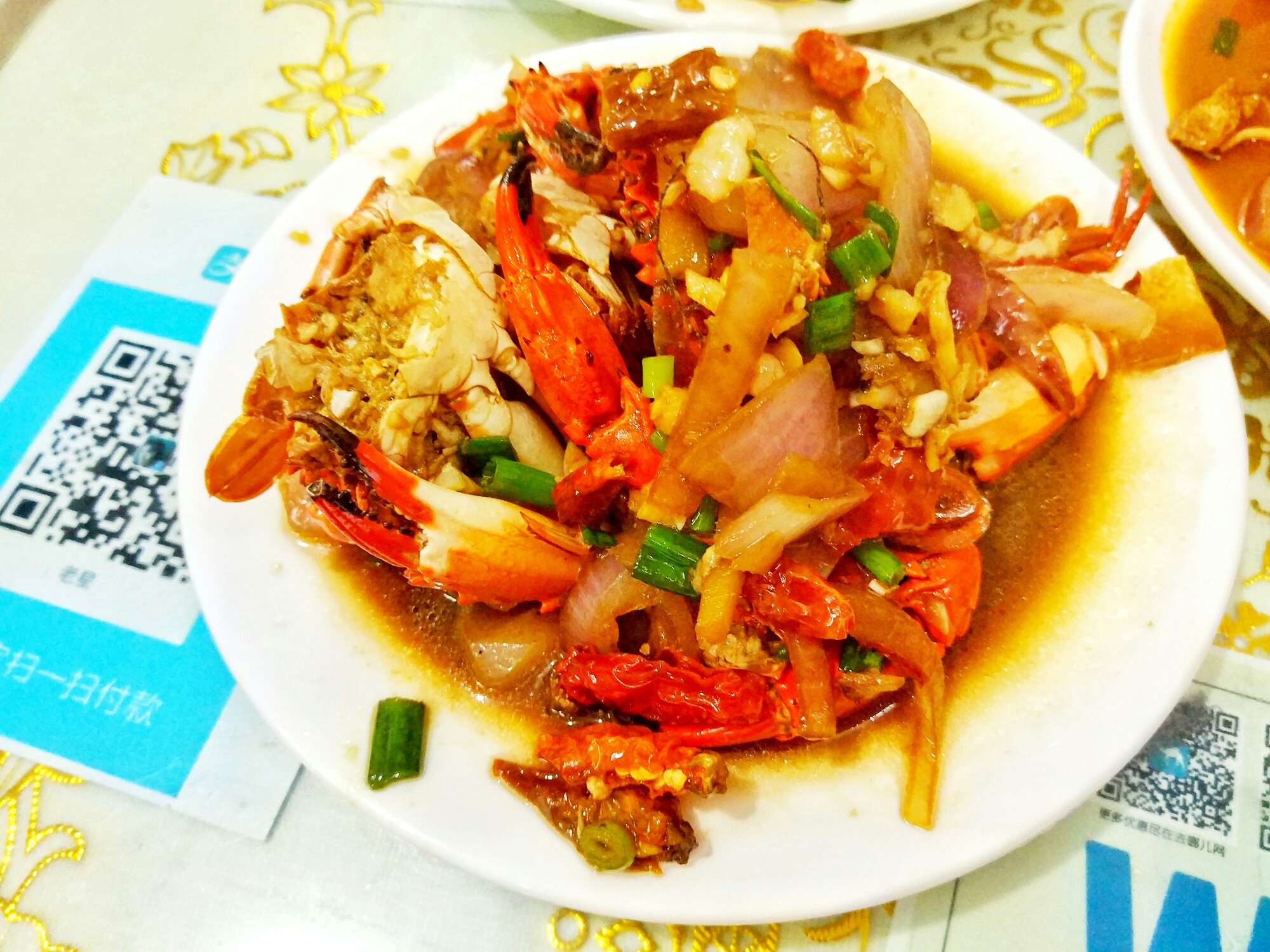 我们点了五个菜+炒饭,说实话,这里的菜完胜小眼镜大排档,海鲜口味咸淡适中,关键的是更新鲜,肉质更饱满。招牌的香辣蟹,用当地的石蟹制作,虽然个头不是最大,但是满满都是肉。老板还会根据你的要求调整口味。(像小眼镜这样的大店,客人多了,自然没法照顾周全)一桌菜加饮料,只需要132元,这性价比。。。默默羡慕厦门大学的同学们