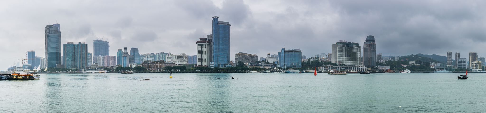 鹭江道位于厦门本岛的西侧,与鼓浪屿隔鹭江相望,沿中山路步行街向西走到底,便能来到鹭江道景色最美的一段景观台。我们来到这里的时候,已经是傍晚时分,正巧夕阳西下,由于厦门此时正处于雨带边缘,对流活动明显,所以云层也更好看。