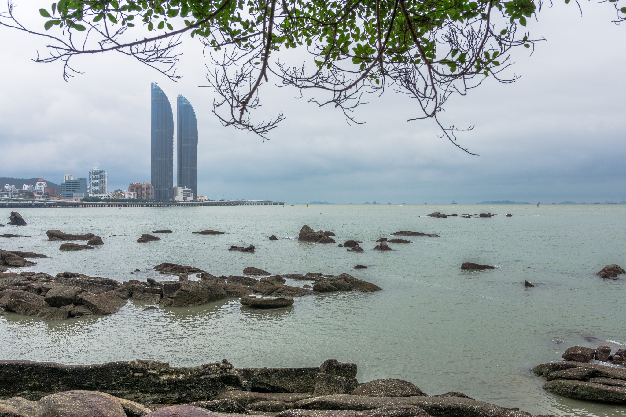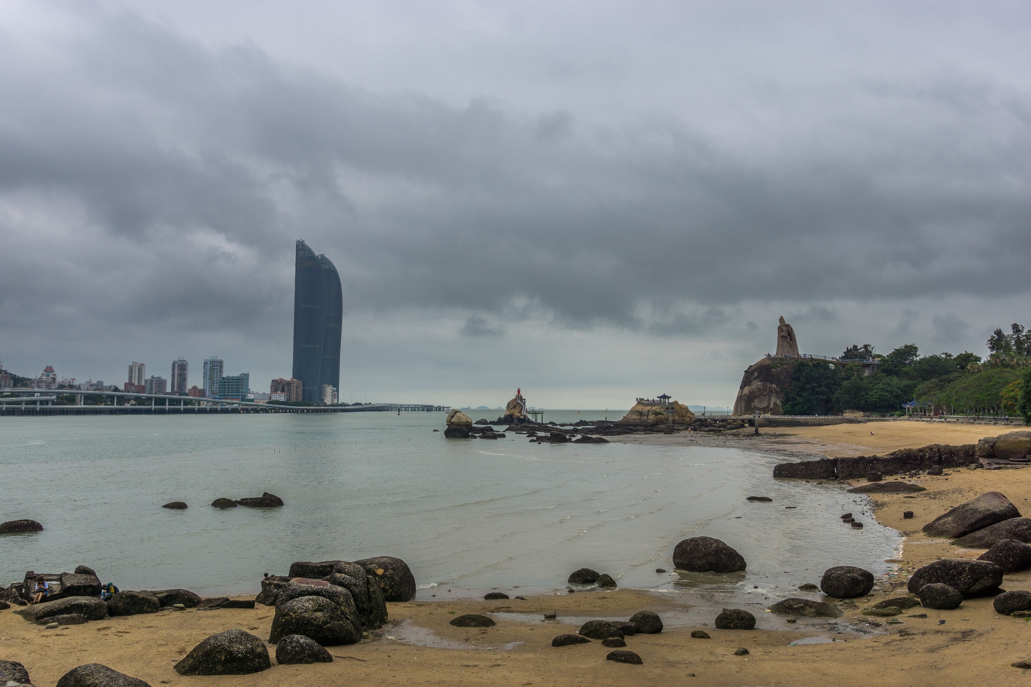 鼓浪屿有多处沙滩和礁石滩,这里是人们戏水的好地方,也是拍照的好地方。在岛上小转一圈之后我发现最佳的拍摄地在岛东南处的印斗石附近,这里礁石密布,对面又是厦门标志性的双子塔。