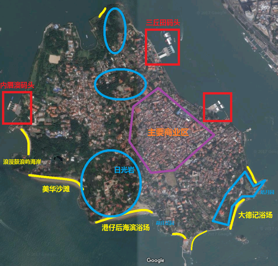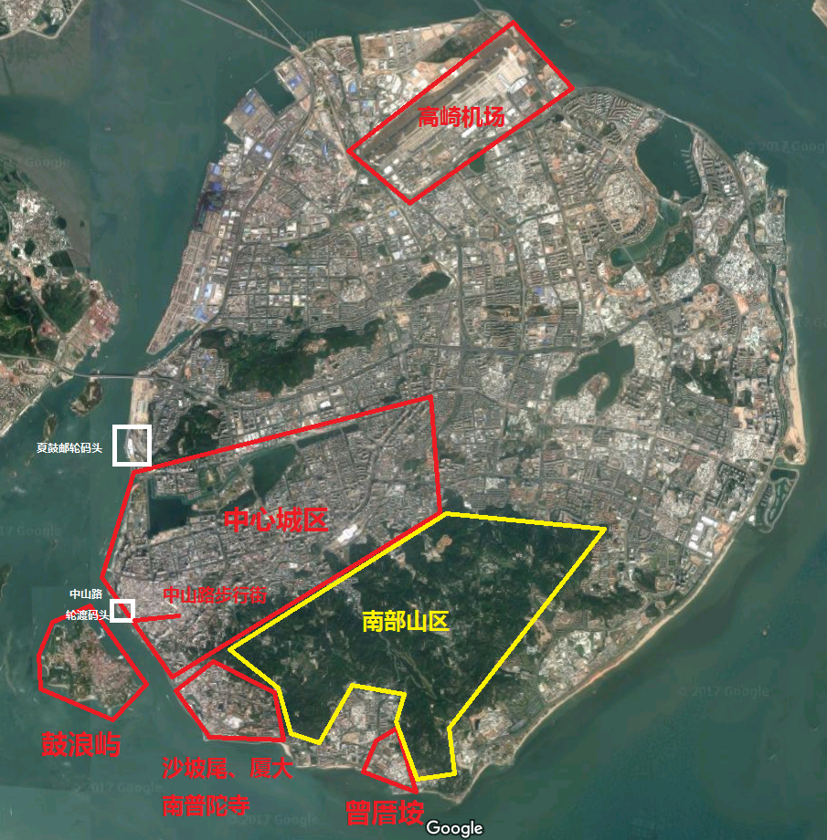 下图是厦门本岛的地图,我对一些主要地点做了标记