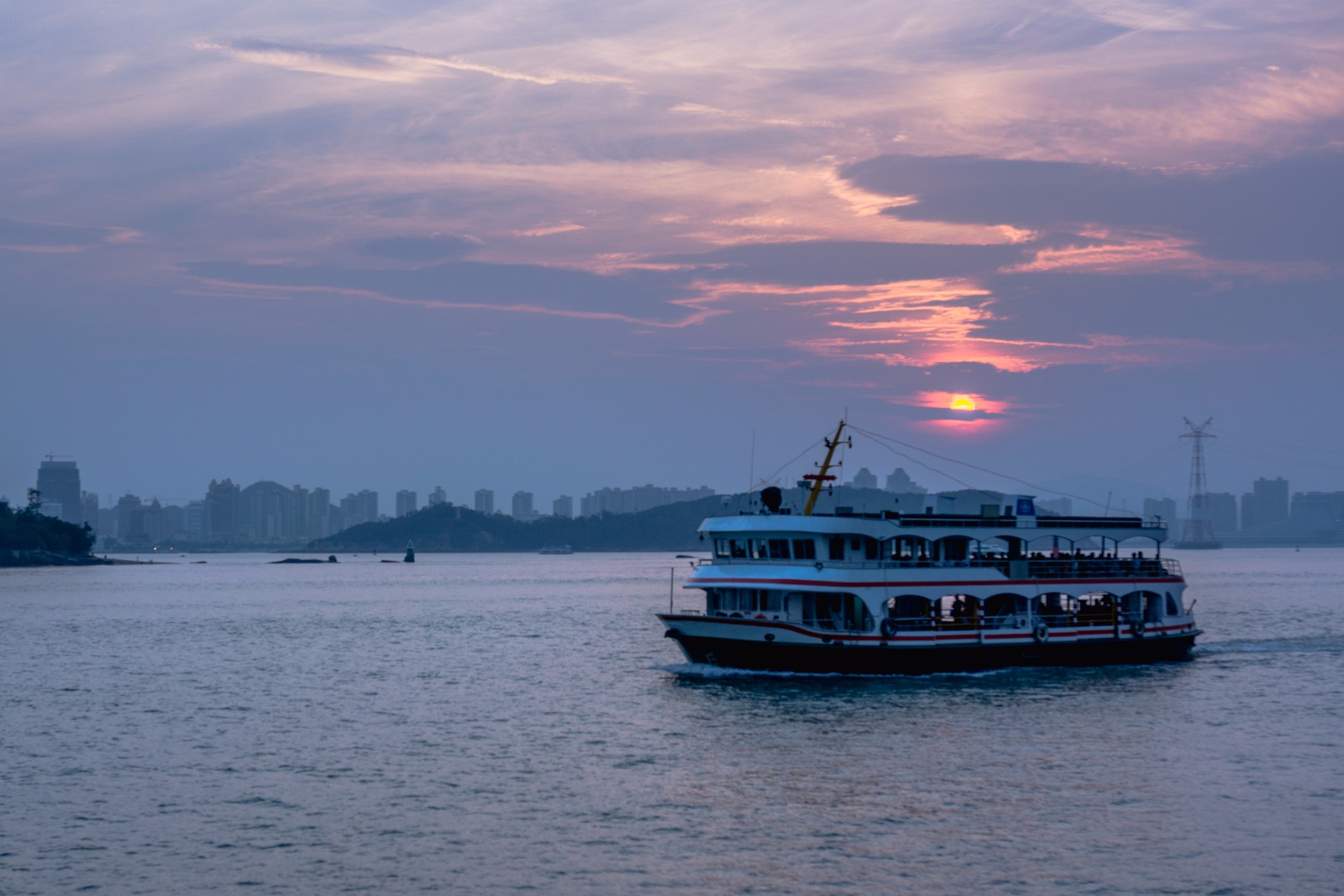 鹭江上最忙碌的就要数往返厦门和鼓浪屿的渡轮了,夕阳下的渡轮正载着一船游客开往鼓浪屿。