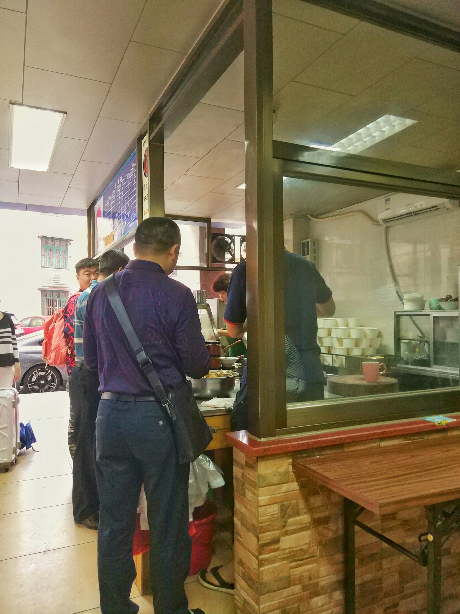 我们一大早就来到了这里,因为下雨,店里人不多,没有遇到排队的人群,不过基本也是坐满的。正如之前攻略中看到的一样,这家店的门面实在不大,甚至一不小心就错过了,隐藏于一排骑楼当中。不过想找也不难,门口一般都停着许多食客开来的车,跑车也不在少数。因为店面关系,小店的座位并不多,二楼和店门外都有座位