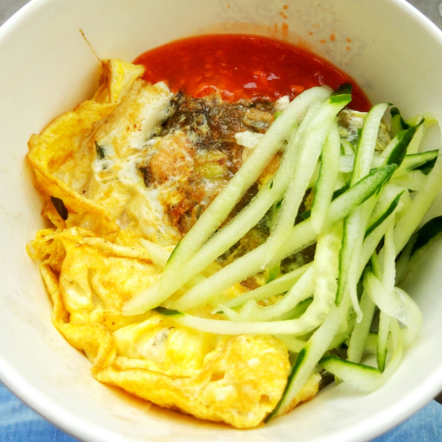 煎完之后放入黄瓜丝和甜辣酱,这家的番薯粉和油都放得恰到好处,加了解腻的黄瓜,酱料酸酸甜甜,更加加分!