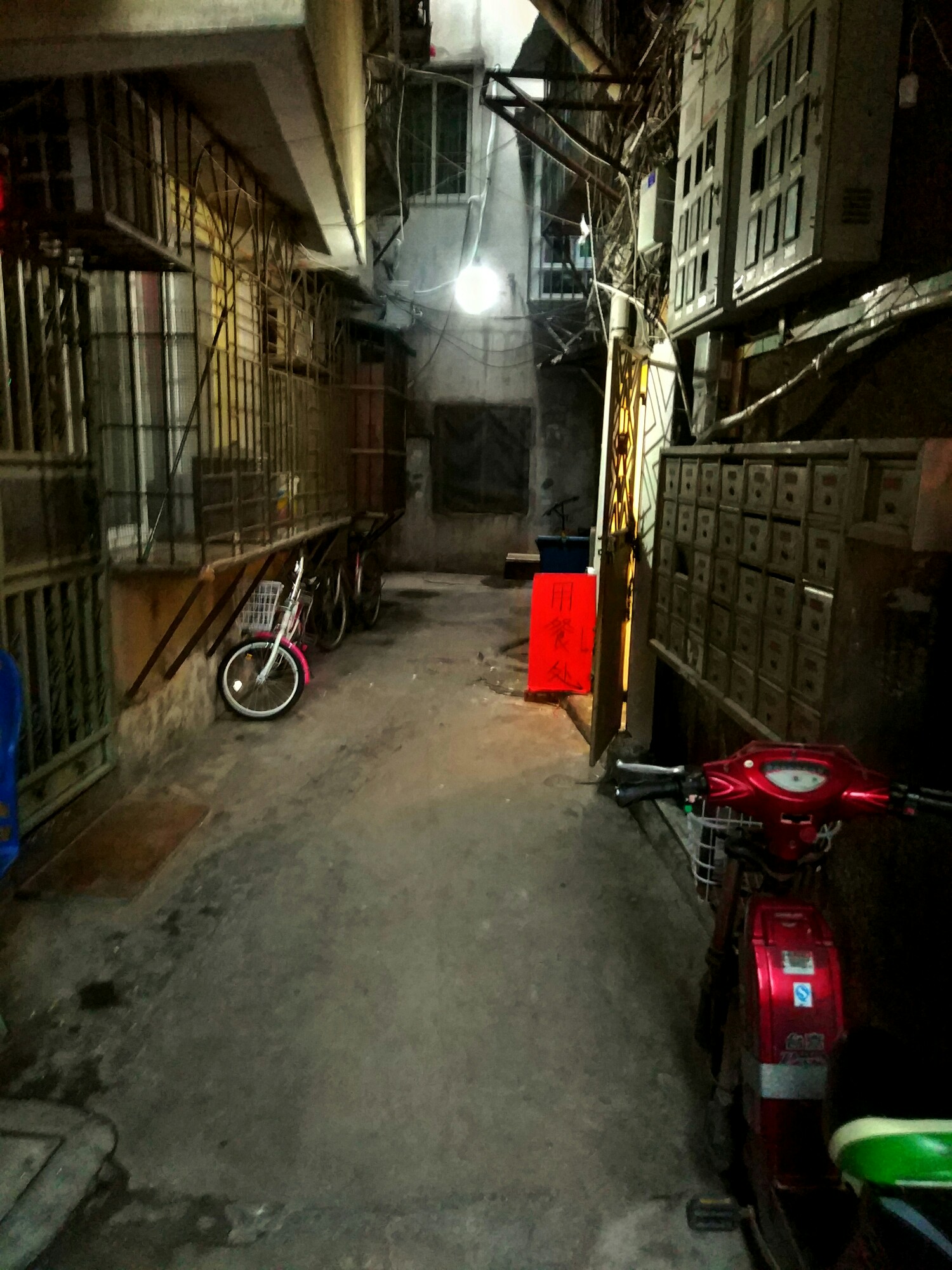 小店门面里面只有一排座位,最多做3个人,做面的大妈指着边上的小巷,说里面有座位,顺着她指的方向看去,真的突然有种吃黑暗料理的味道。