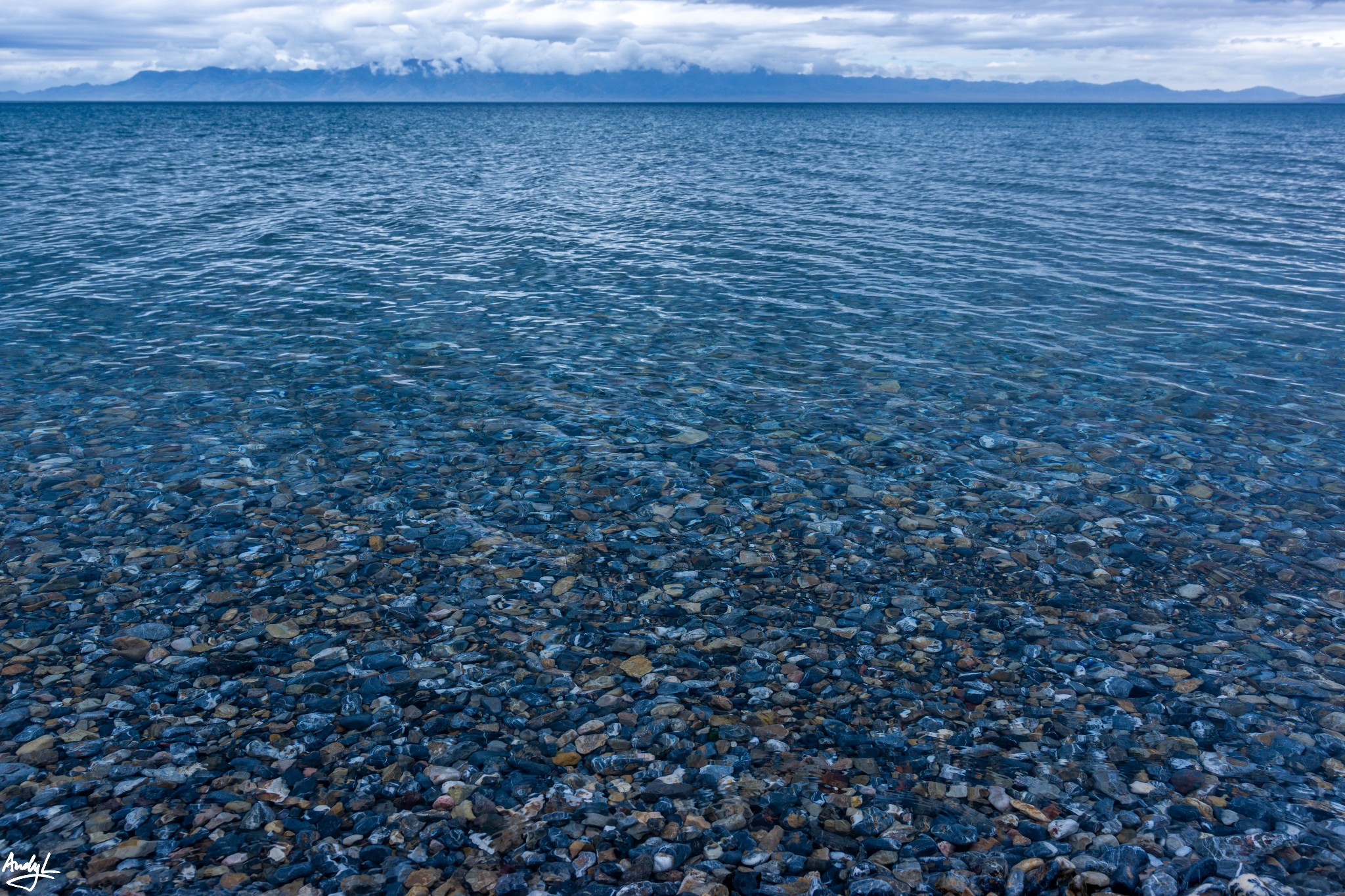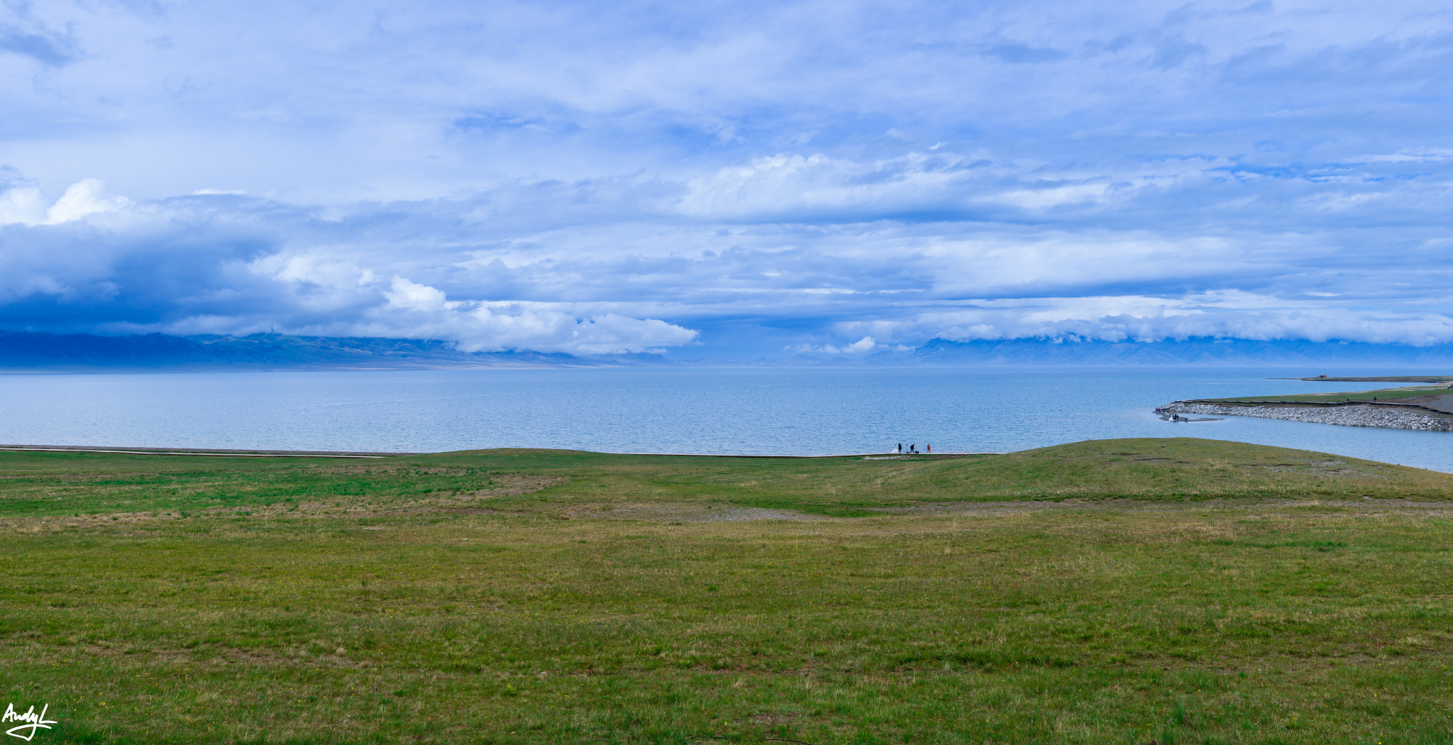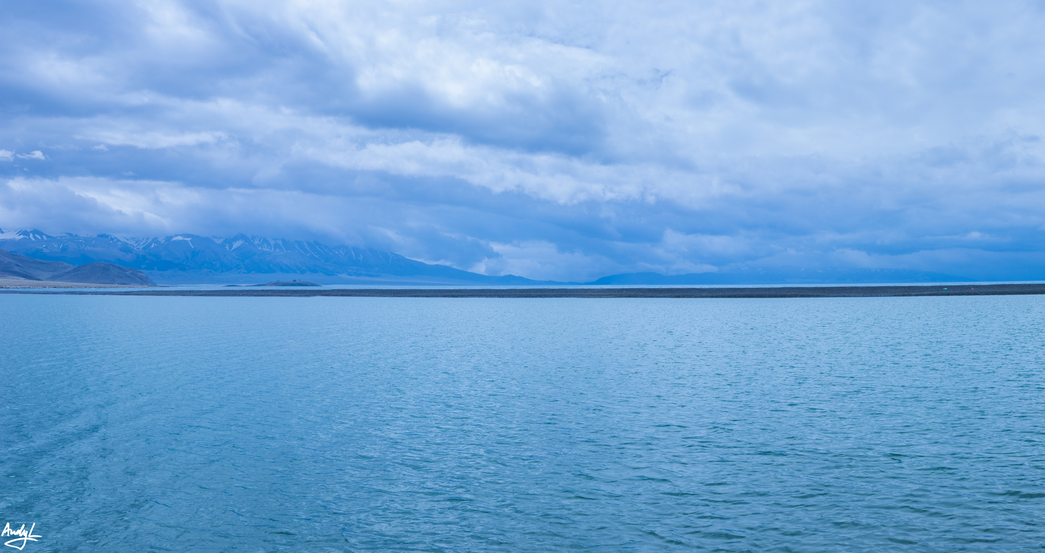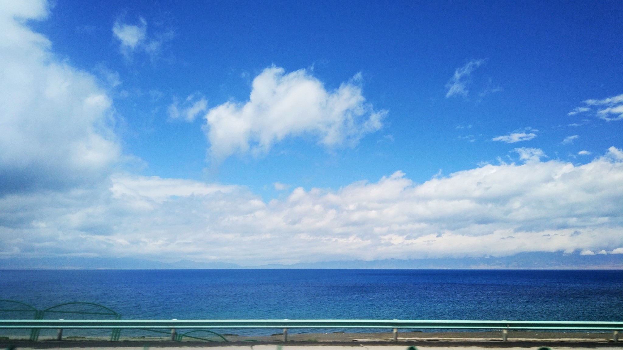 蓝天下,湛蓝的湖面望不到边际,若不是看到远处若隐若现的群山,还真以为自己来到了海边。