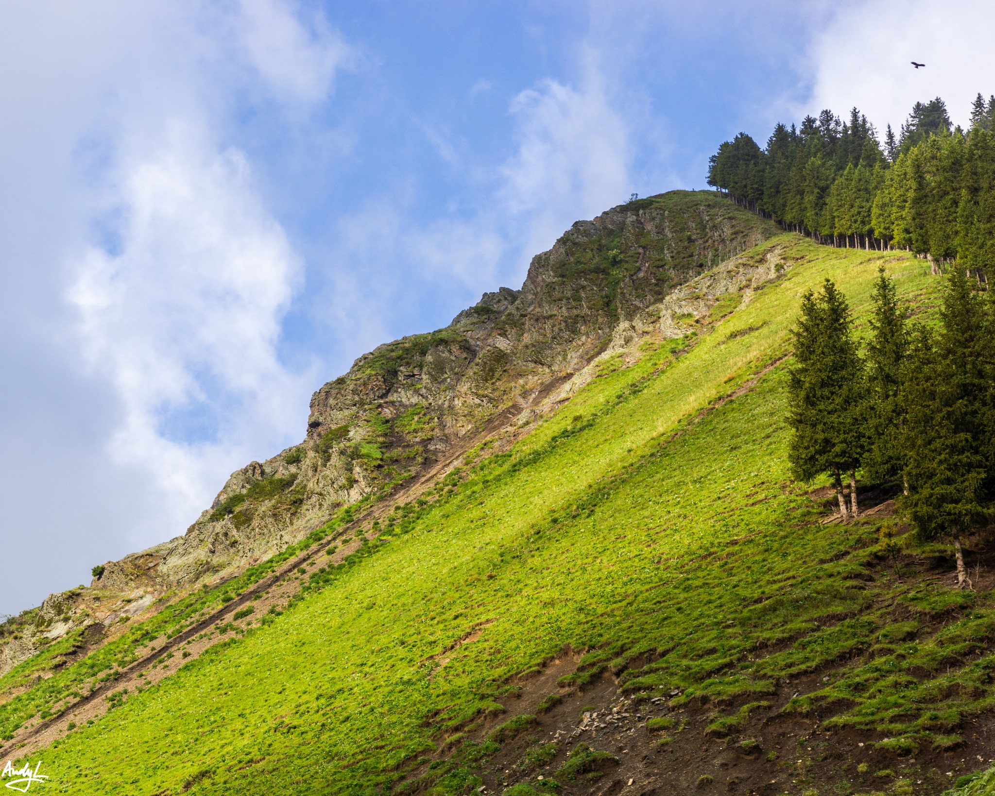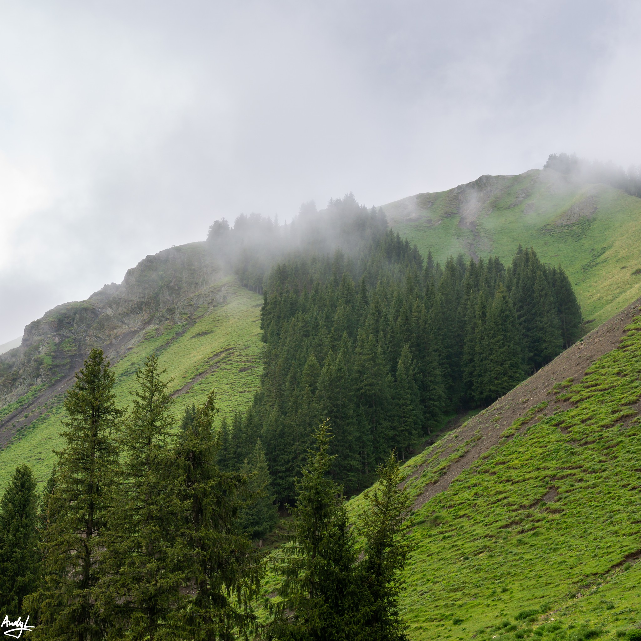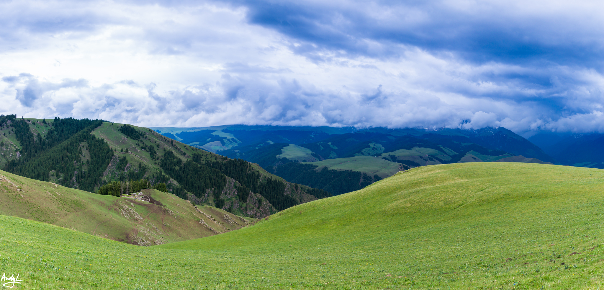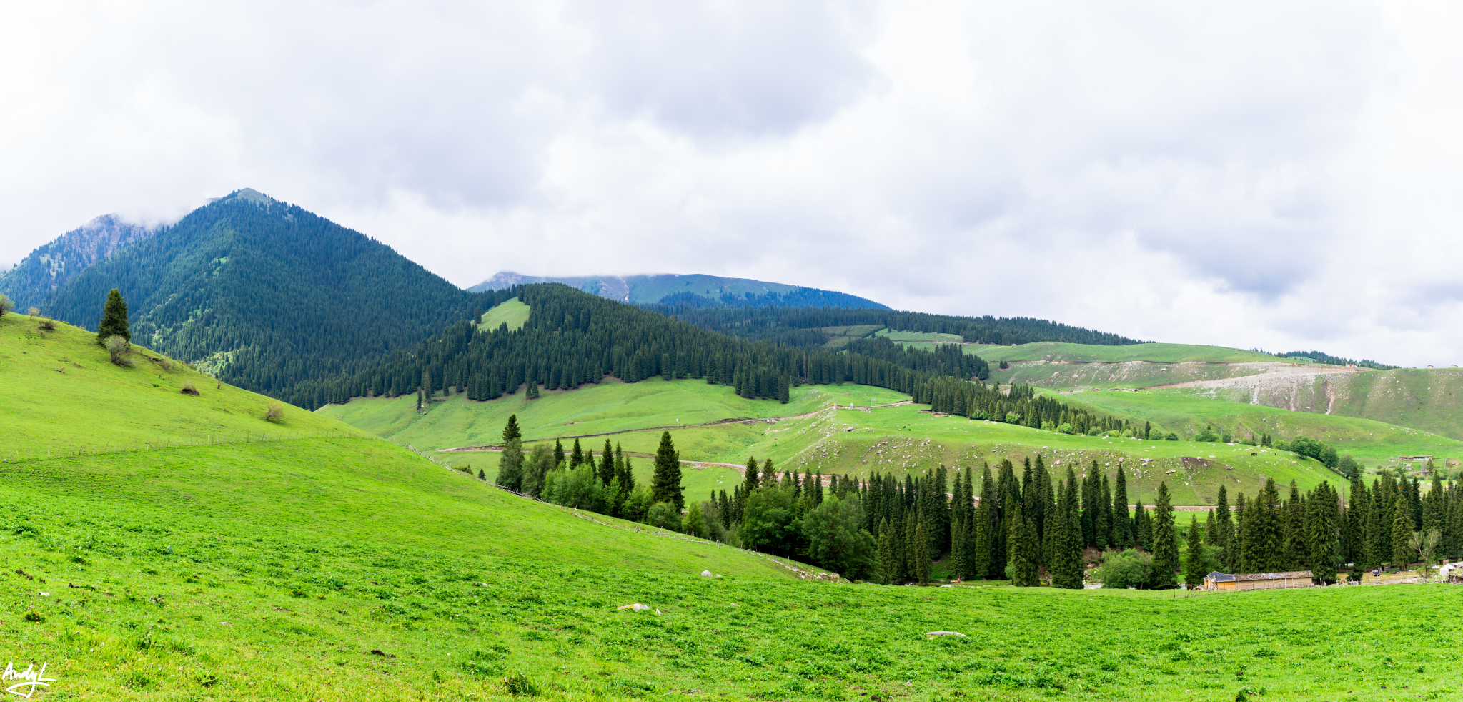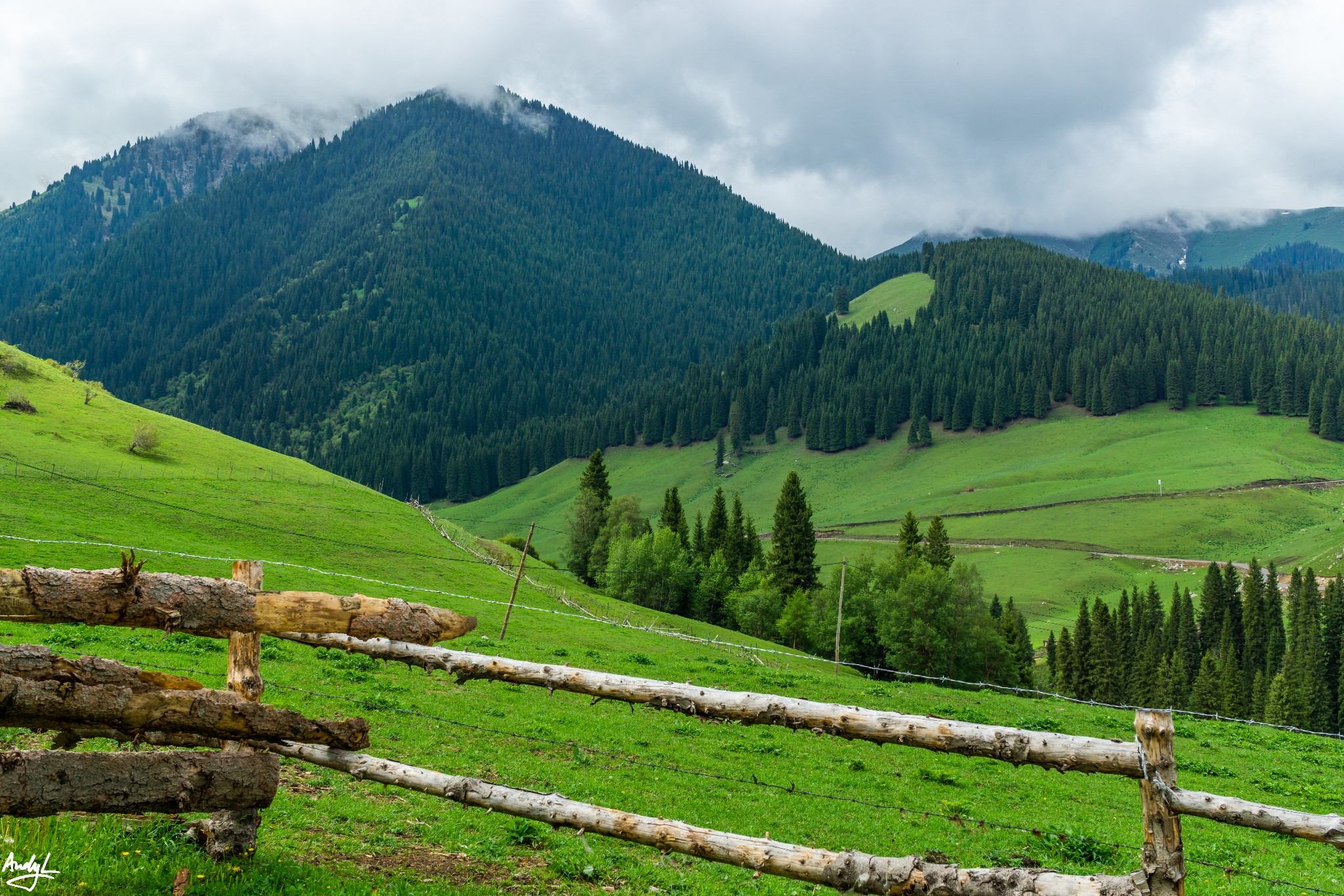 等到我们从赛里木湖出来的时候再次来到果子沟,天气就没有那么好了,蓝天已经被乌云取代,没有了光线。