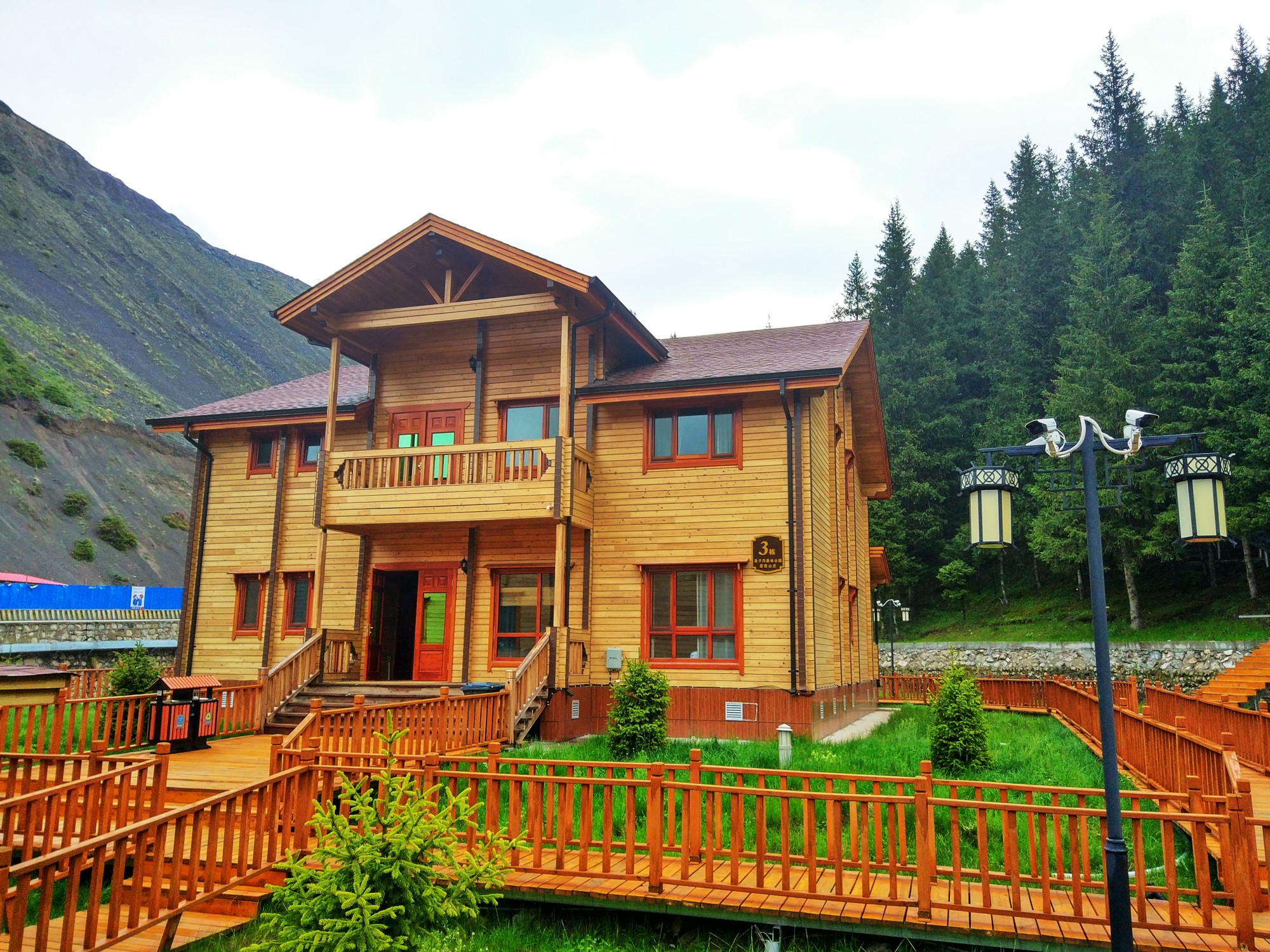 果子沟森林公园现在正在建设,如同工地一般,到处都在修路。这一天经过了飞机、汽车的颠簸,同行的大部分小伙伴都累了,于是直接来到住处住下了。我们包下了一栋小木屋,度过了在伊犁的第一个晚上(由于电力紧缺,晚上11点钟酒店会断电,仿佛回到了大学时光)。