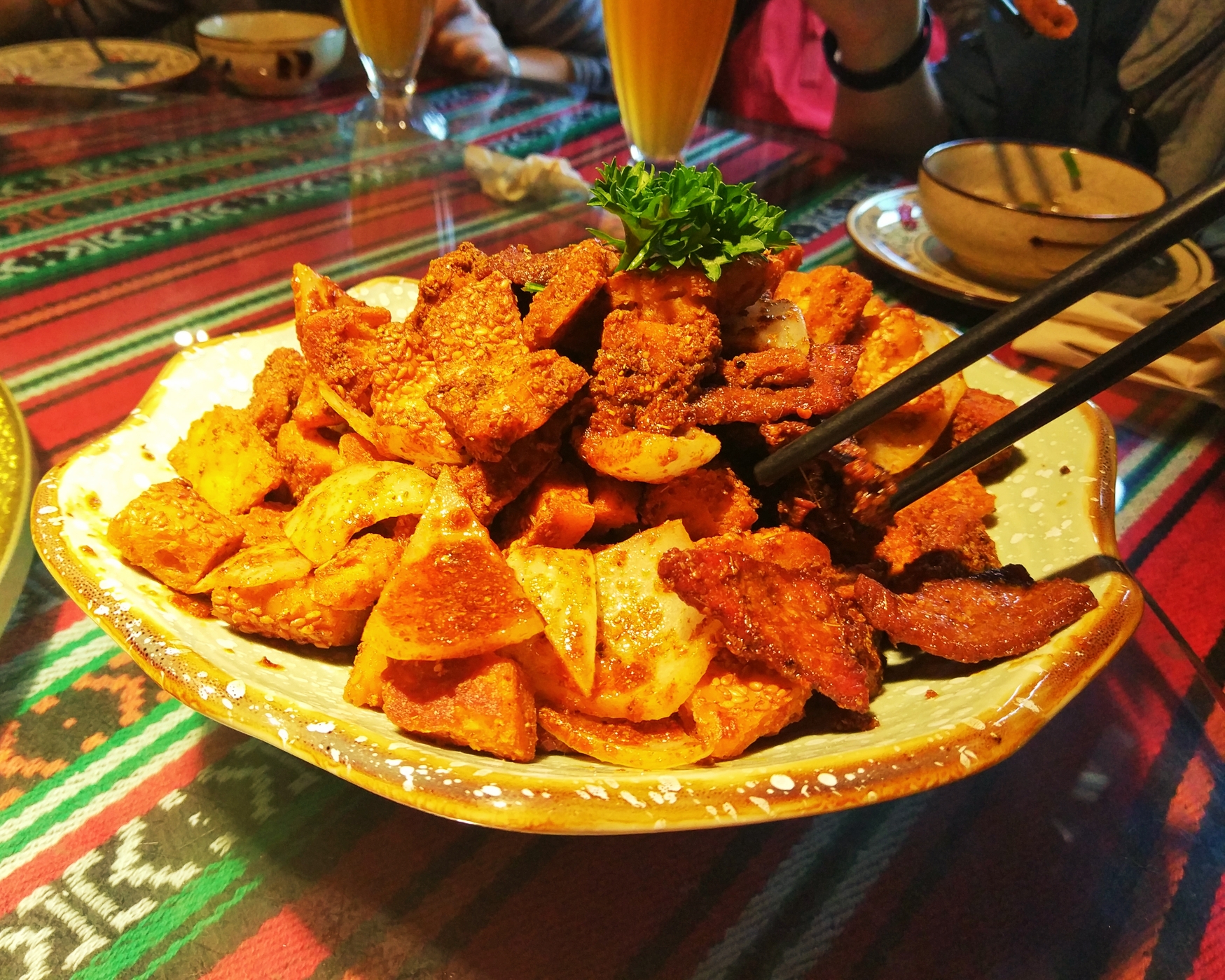 在新疆,绝大多数的食物都是肉,相对而言绿叶蔬菜比较少。