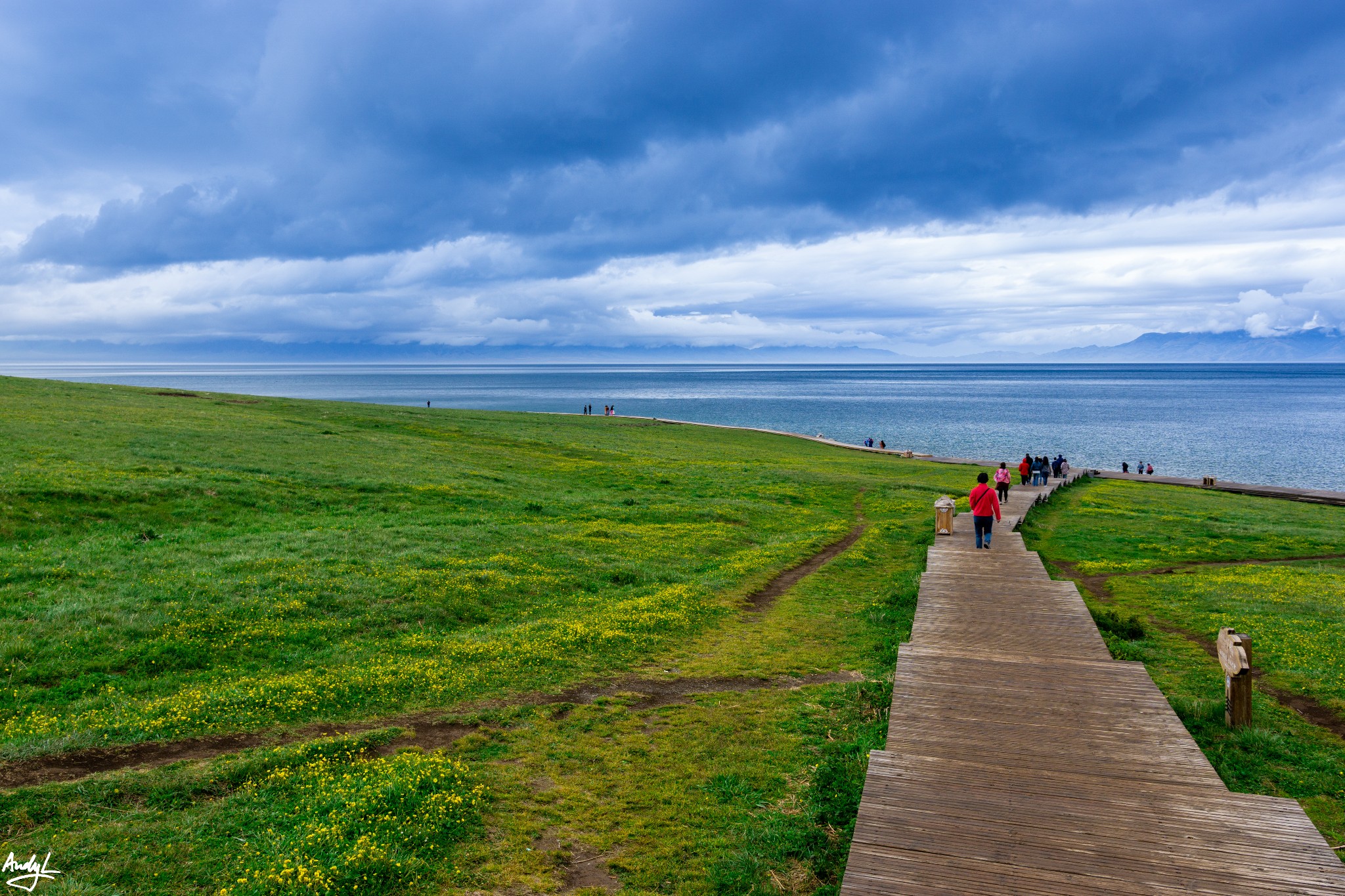 由于前两天这里还在下雪,所以温度比较低,湖边最负盛名的鲜花还未盛开显得有点光秃秃。