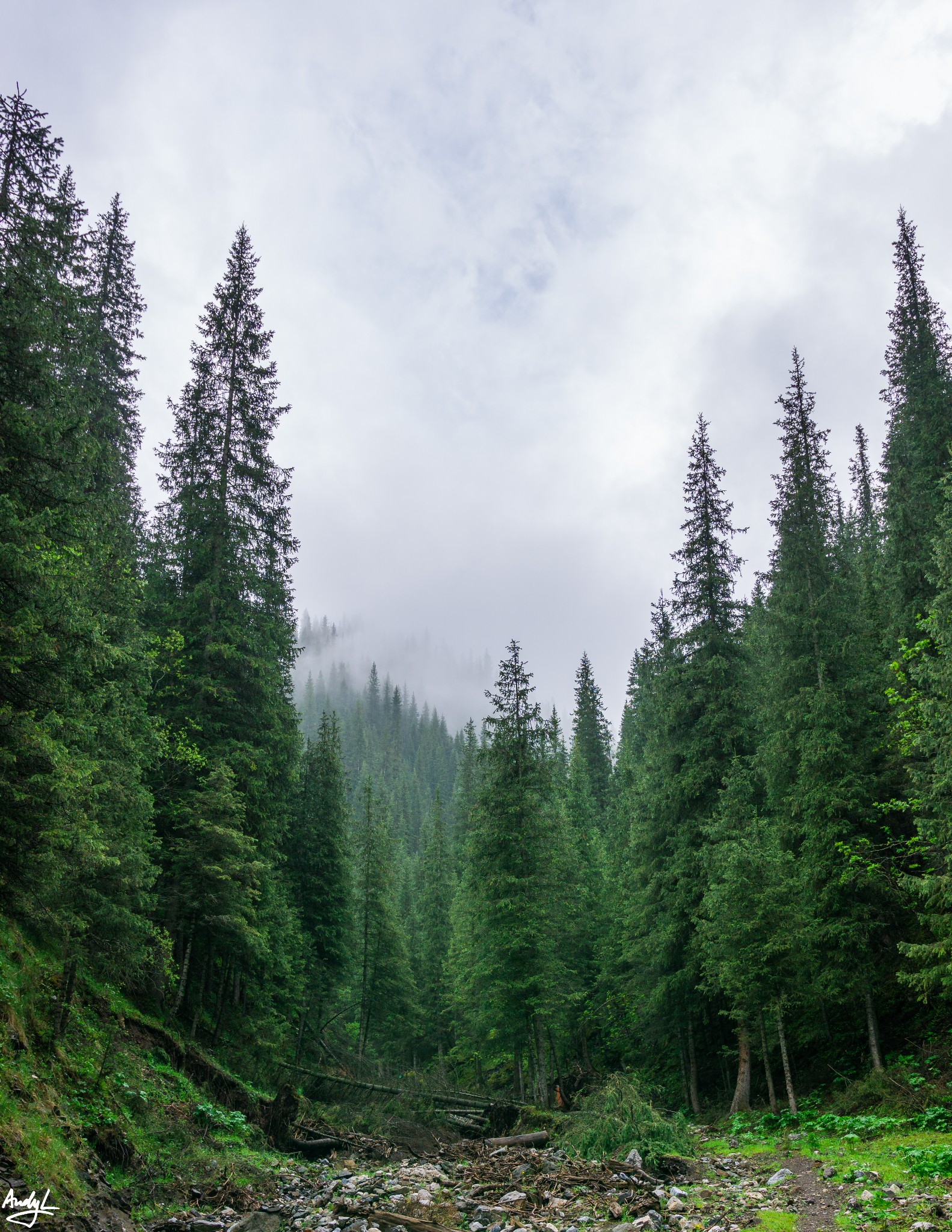 不像许多网图中的阳光明媚,雾中的果子沟,和我预期的不大一样,但是清晨的山林相当安静,整个山谷中,只能听到自己的脚步声。