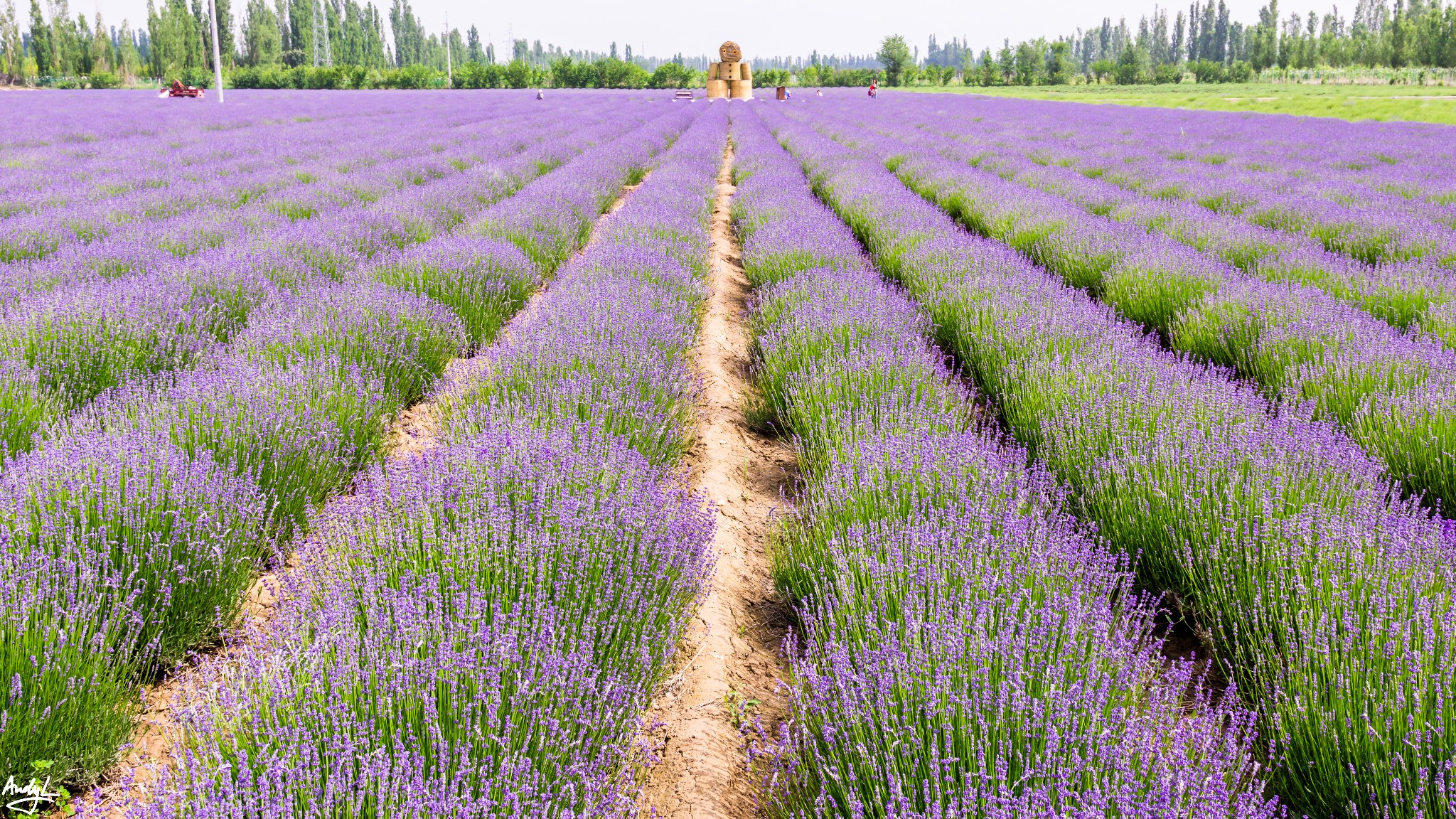 离开果子沟,继续往下一个目的地前行,第一个经过的是霍城的薰衣草庄园。其实在路上,我们可以看到路边种植的大大小小的薰衣草田,但是绝大部分都非常矮小,几乎没有开什么花。五月底全疆的大雪似乎让所有的花期都延后了,霍城的薰衣草也不例外。