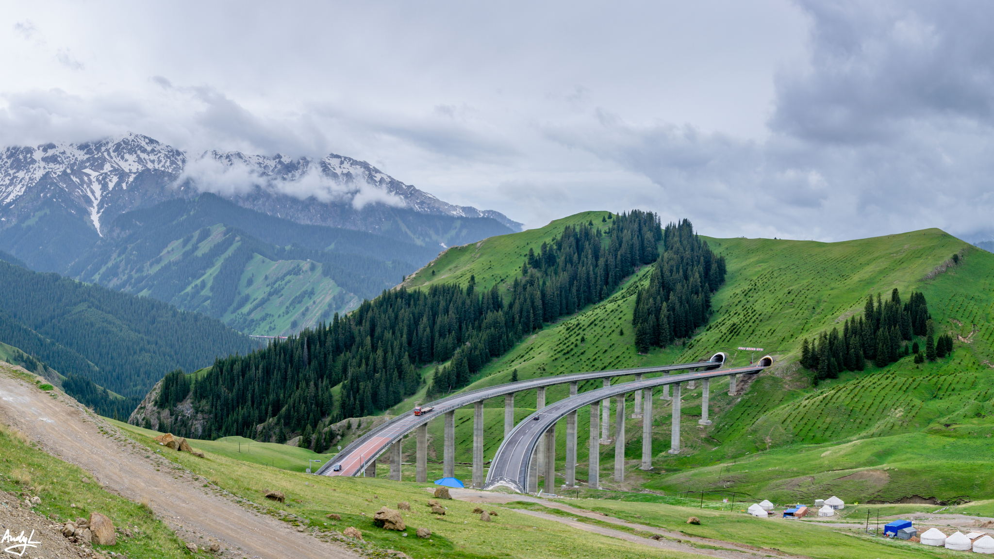 由于从果子沟到赛里木湖,会爬升一定的高度,所以这里的标志——果子沟大桥也被修建得相当高大。