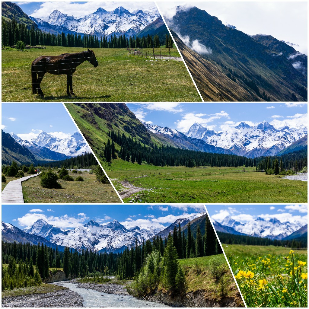 9天的行程,实际上几乎一半的时间都在路上。主要的景点有霍尔果斯口岸、赛里木湖、果子沟、琼库什台、喀拉峻草原、阔克苏大峡谷、夏塔、昭苏马场、新疆博物馆、国际大巴扎。