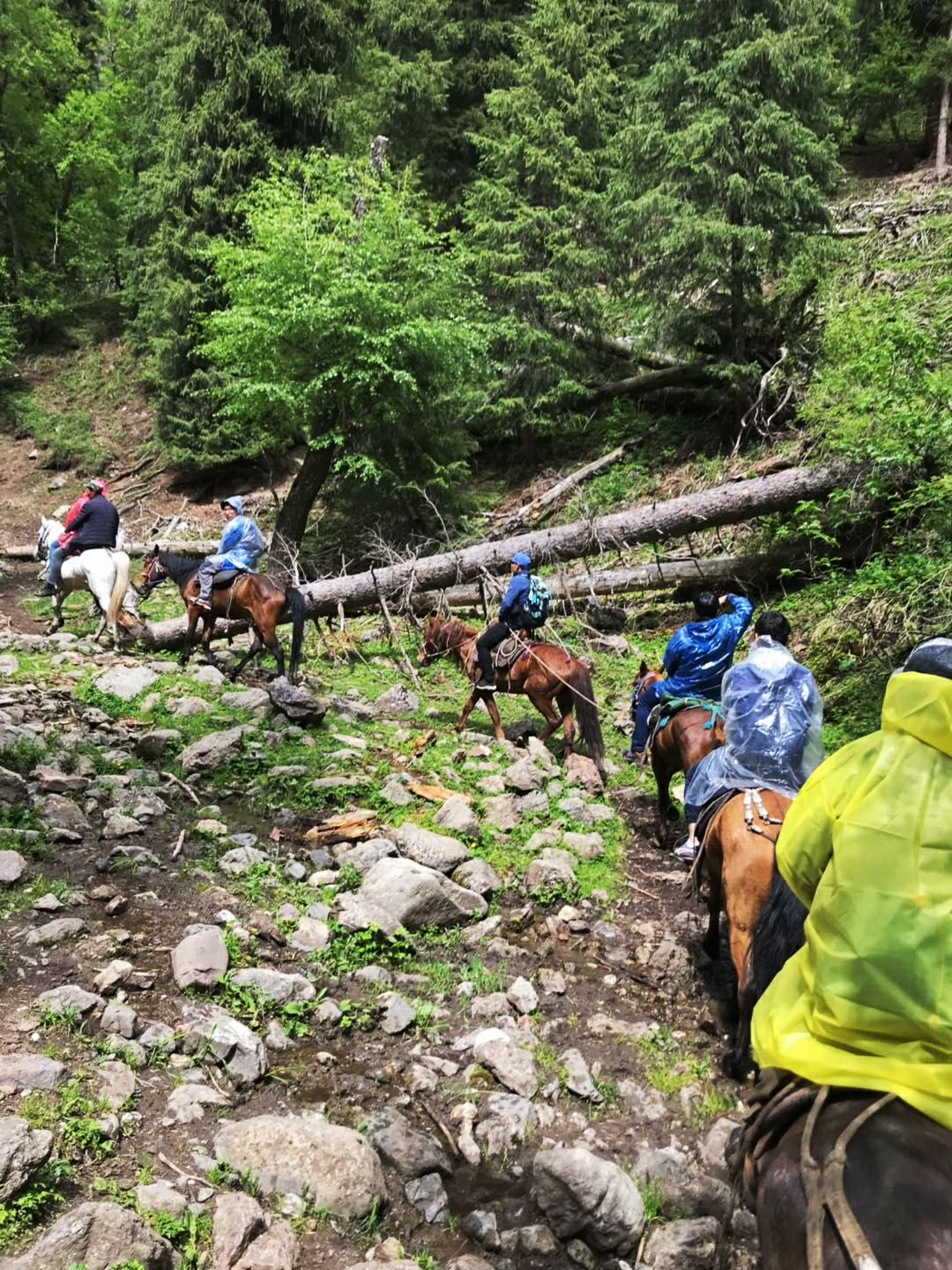在穿越两座山之间的谷地的时候,有个小伙伴不慎落马,好在没有大碍,虚惊一场后大伙继续前进,与第一座山上开阔的草原地形不同,第二座山就主要以森林为主,穿越森林的时候下起了小雨,还好不大,没有影响骑行。