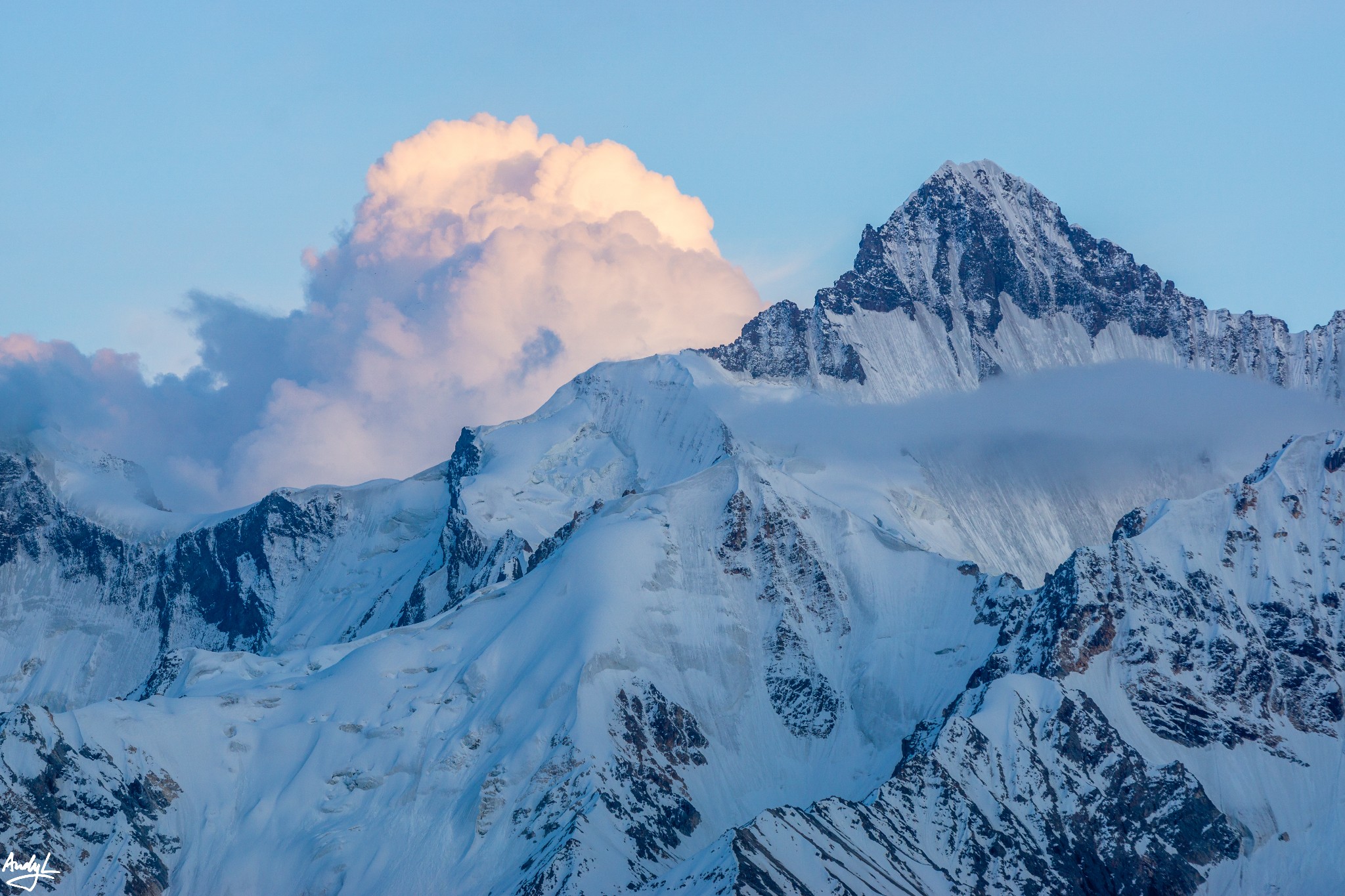 远处的雪山已经完全被雾遮住了。