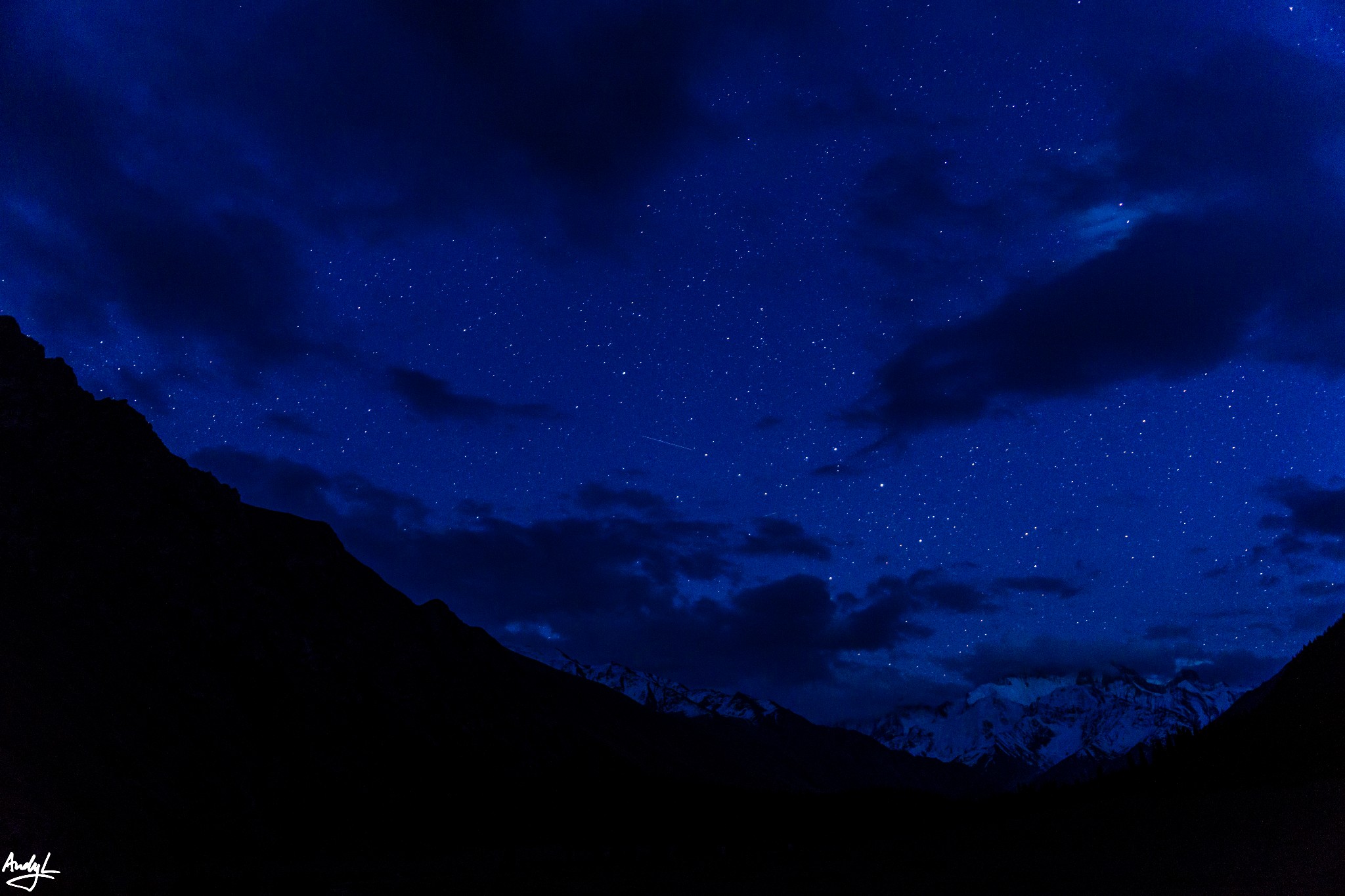 银河并未如我们预期一样出现在雪山之上,雪山只是在云层中若隐若现。