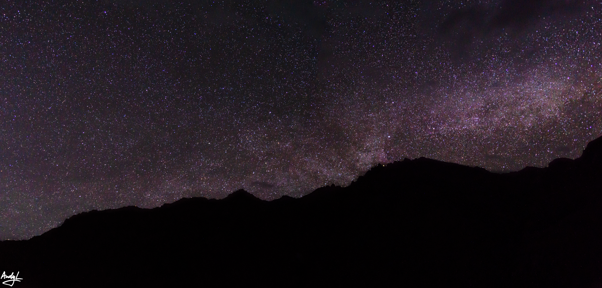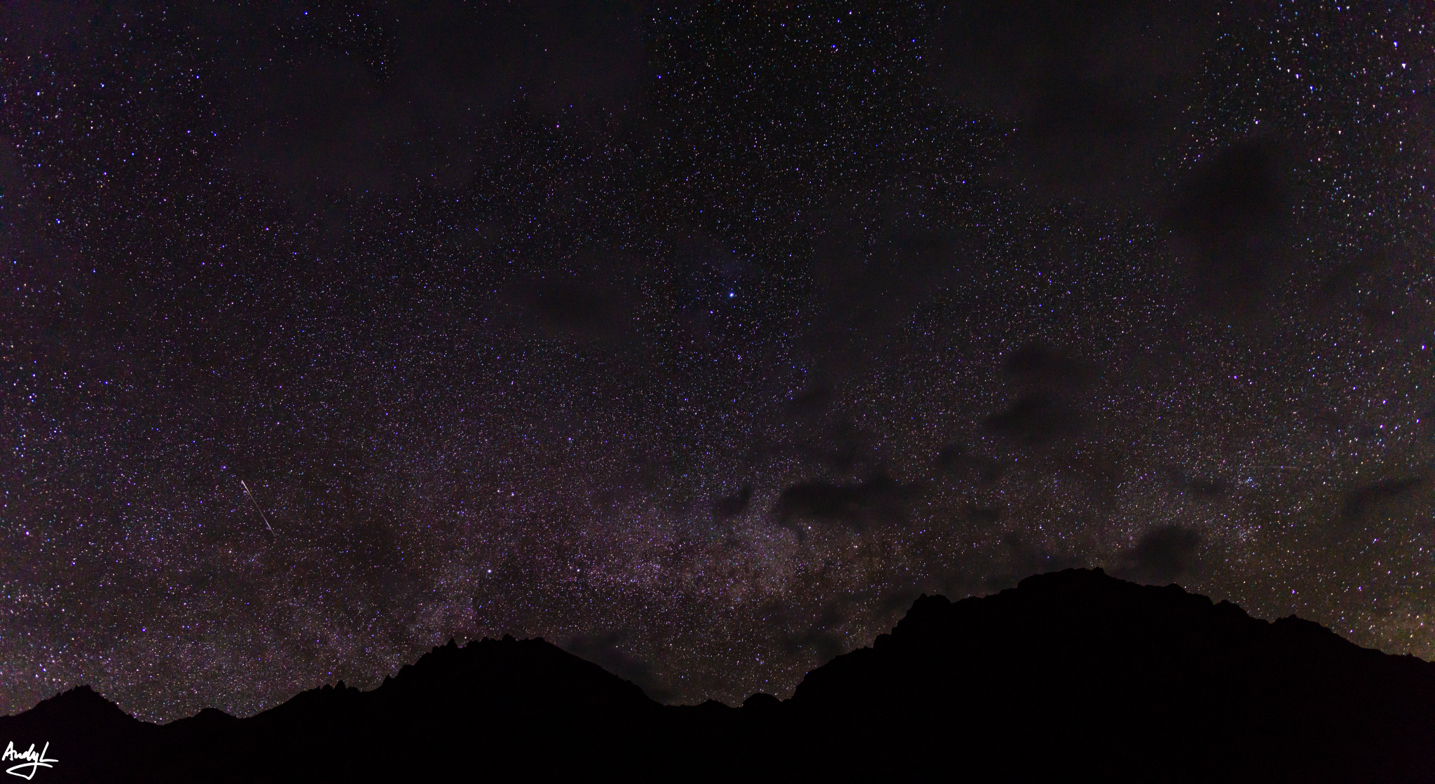 经过几个小时的等待,我们终于发现了银河的迹象,原来是被东边的高山遮挡住了。