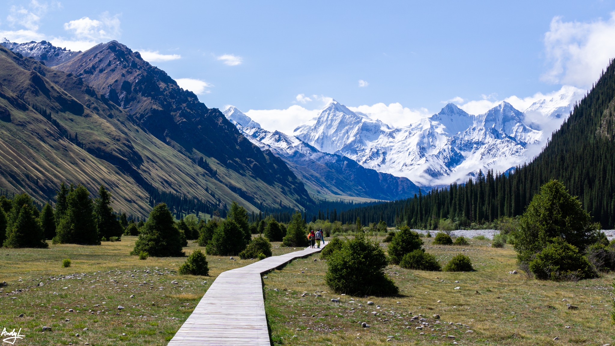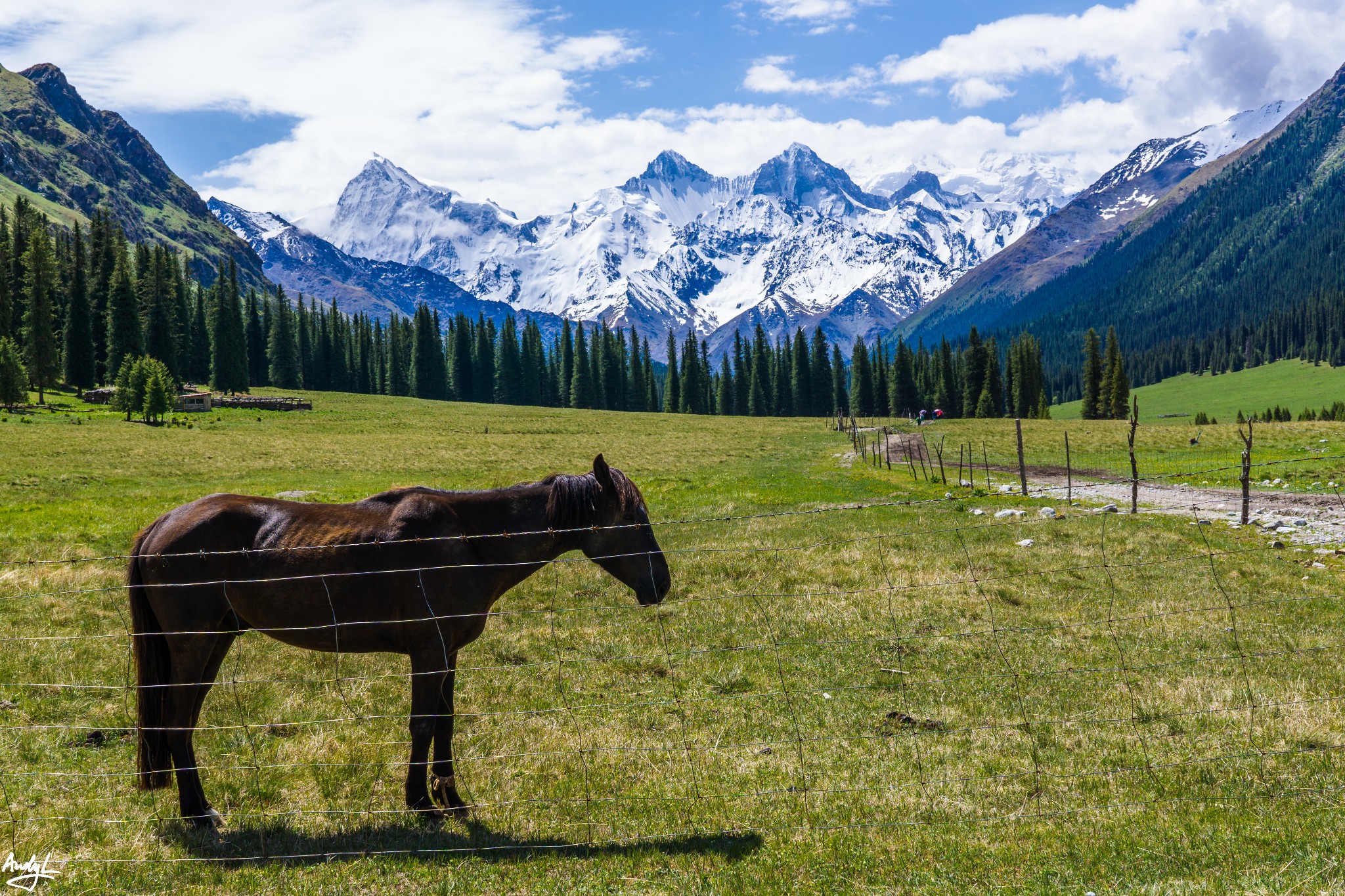 眼前的雪山是天山的主脉,雪山中的木扎尔特冰川是伊犁地区河流的重要水源,冰川融水从这里流下,汇聚到夏塔河,继而流向特克斯河。