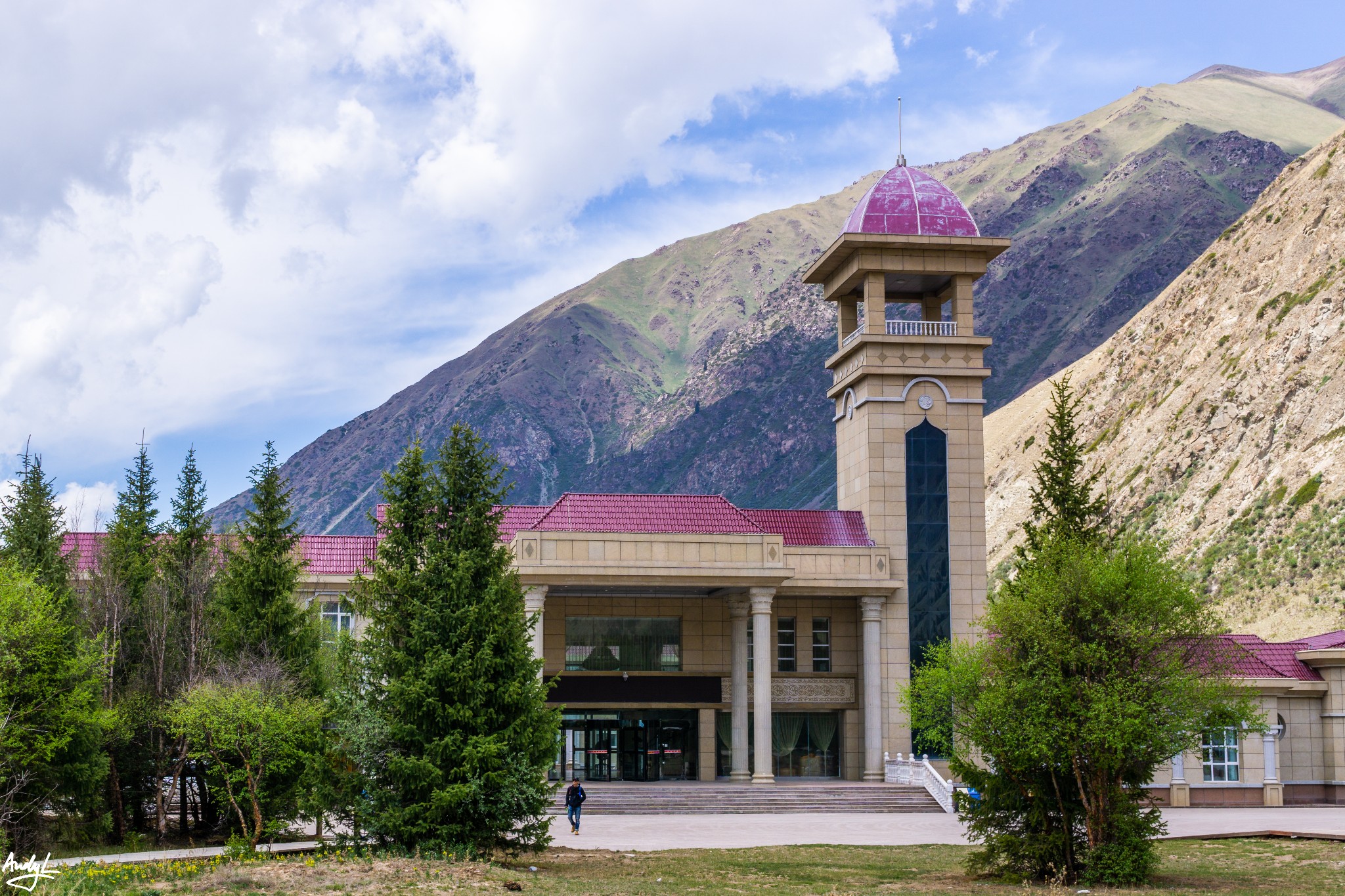 我们抵达夏塔的时候已经接近傍晚了,因为需要住在景区内的温泉酒店,所以需要换成景区车进入。从夏塔景区的大门,到温泉酒店,大约需要20分钟车程,景区非常大,而且大部分区域正在建设,到处在修路。我们入住的温泉酒店是区间车的终点站,酒店外观看上去非常豪华,但内部设施却有些低配,最抓狂的是酒店用电竟然是柴油发电机提供的,时不时会断电,热水什么的也没法到位。这家酒店是刚刚开的,供电的线路还没有完全修好,等完全修好之后,应该会有改善吧。