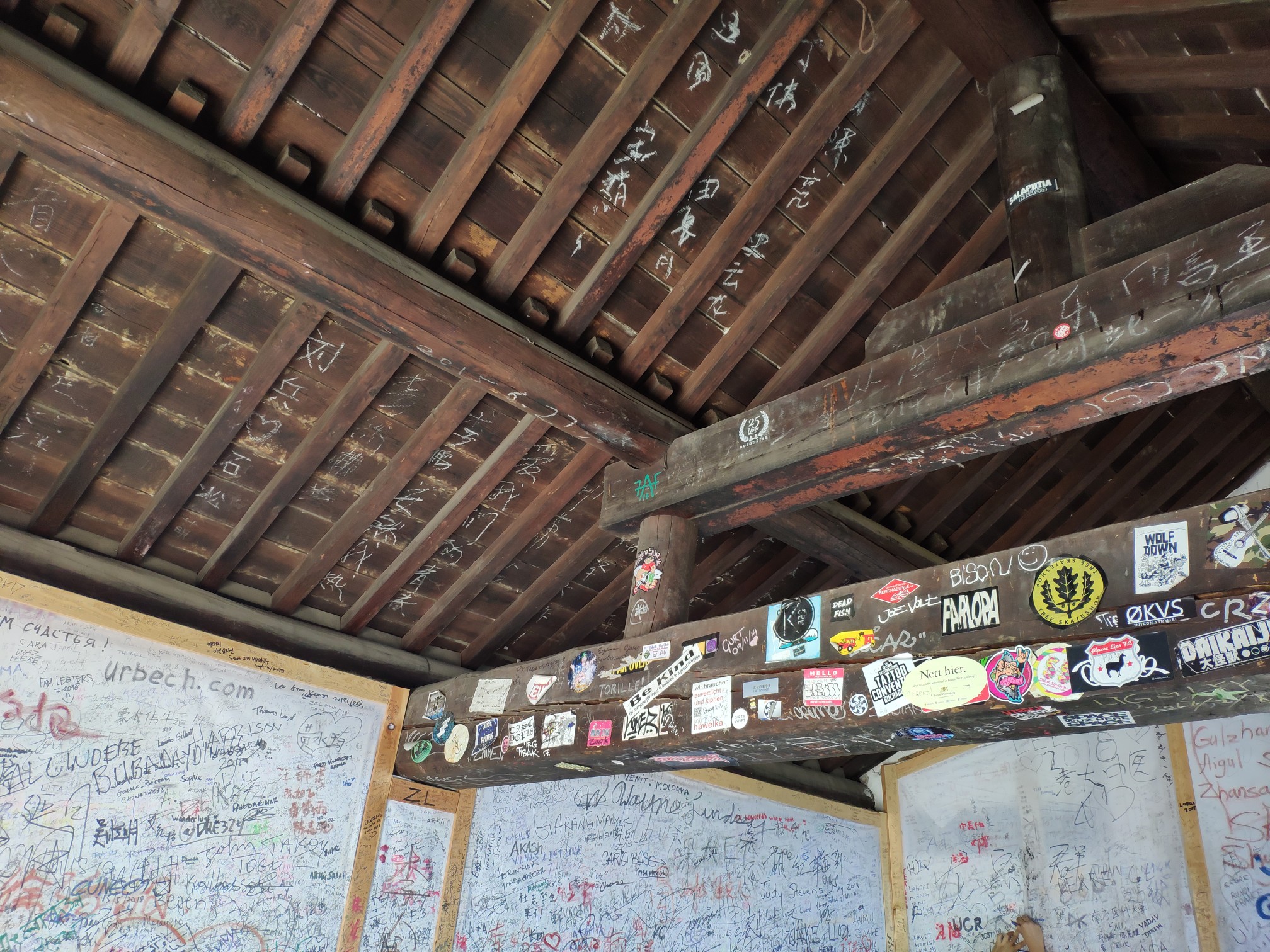 景区也许是意识到了这样的涂鸦会对城墙产生破坏,专门在一些敌楼内部设立了涂鸦墙,既满足了有这一癖好的游客,也保护了城墙。