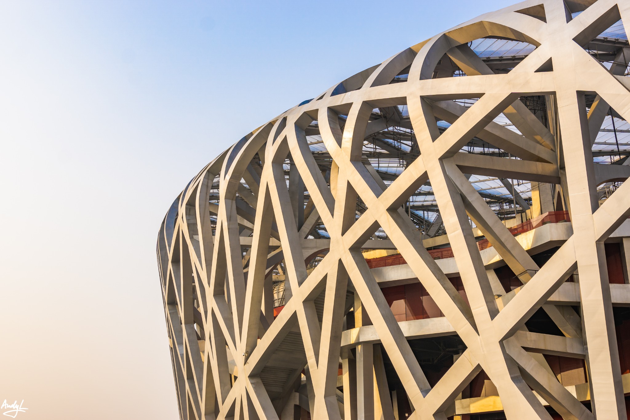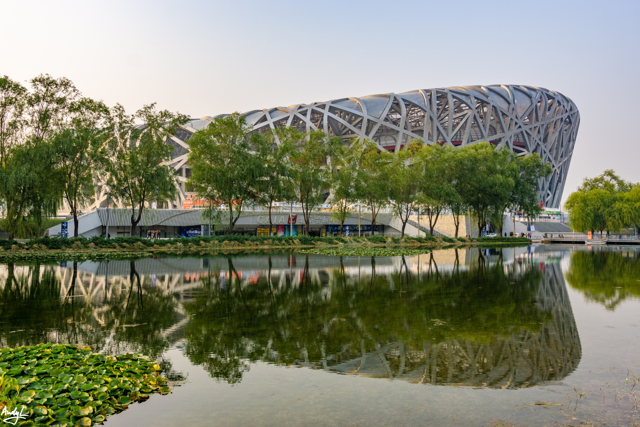 从慕田峪长城回到市区,大巴正好经停鸟巢,于是顺路游览一下奥体公园。2008年北京奥运会的多个比赛场馆组成了现在的奥林匹克公园,其中作为北京奥运会的主会场,国家体育场自然成了北京最新的必打卡之地,由于其特殊的外形,获得了鸟巢的昵称,它也是整个奥林匹克公园中最大的建筑。