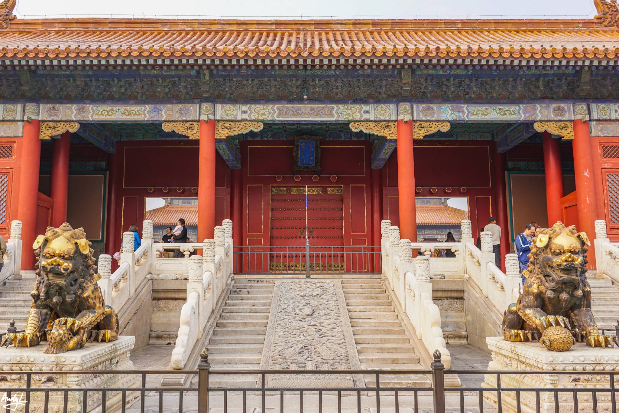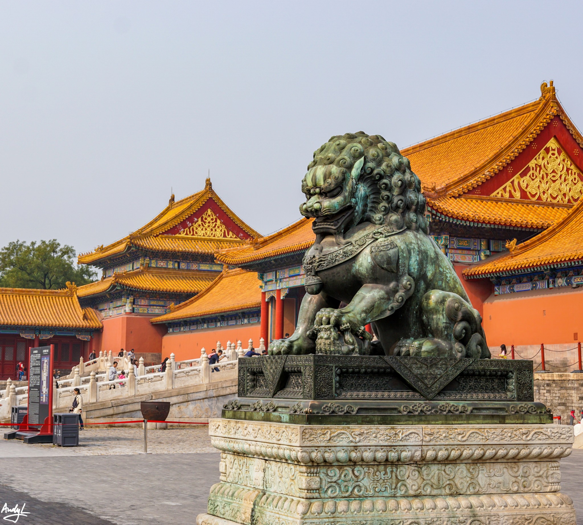 太和门前的铜狮,为明代铸造,屹立百年,象征了帝王家的威严,可惜太和门前正在进行地面整修,无法近距离拍摄。