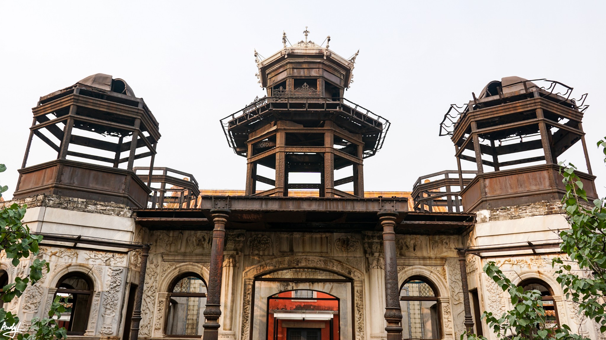 东六宫中,最特别的是延禧宫,这座宫殿由于今年大热的《延禧攻略》,显得人气十足,但是几乎所有人走进延禧宫的时候都会大吃一惊,首先延禧宫除了延禧门之外没有其他招牌,其次,延禧宫内的建筑基本只有这座未完工的“西洋烂尾楼”。。。原本的延禧宫与东西六宫的其他宫殿其实并无二致,由于道光年间的一场大火,烧掉了除宫门之外的全部建筑,直到宣统年间(1909年)才开始复建延禧宫,原本的计划只修建一座三层楼高的“水殿”,因此延禧宫也得到了“水晶宫”的别称,可是因为当时国库空虚,还没等宫殿修完,大清就完了,只留下这座未完工的建筑,令人唏嘘。