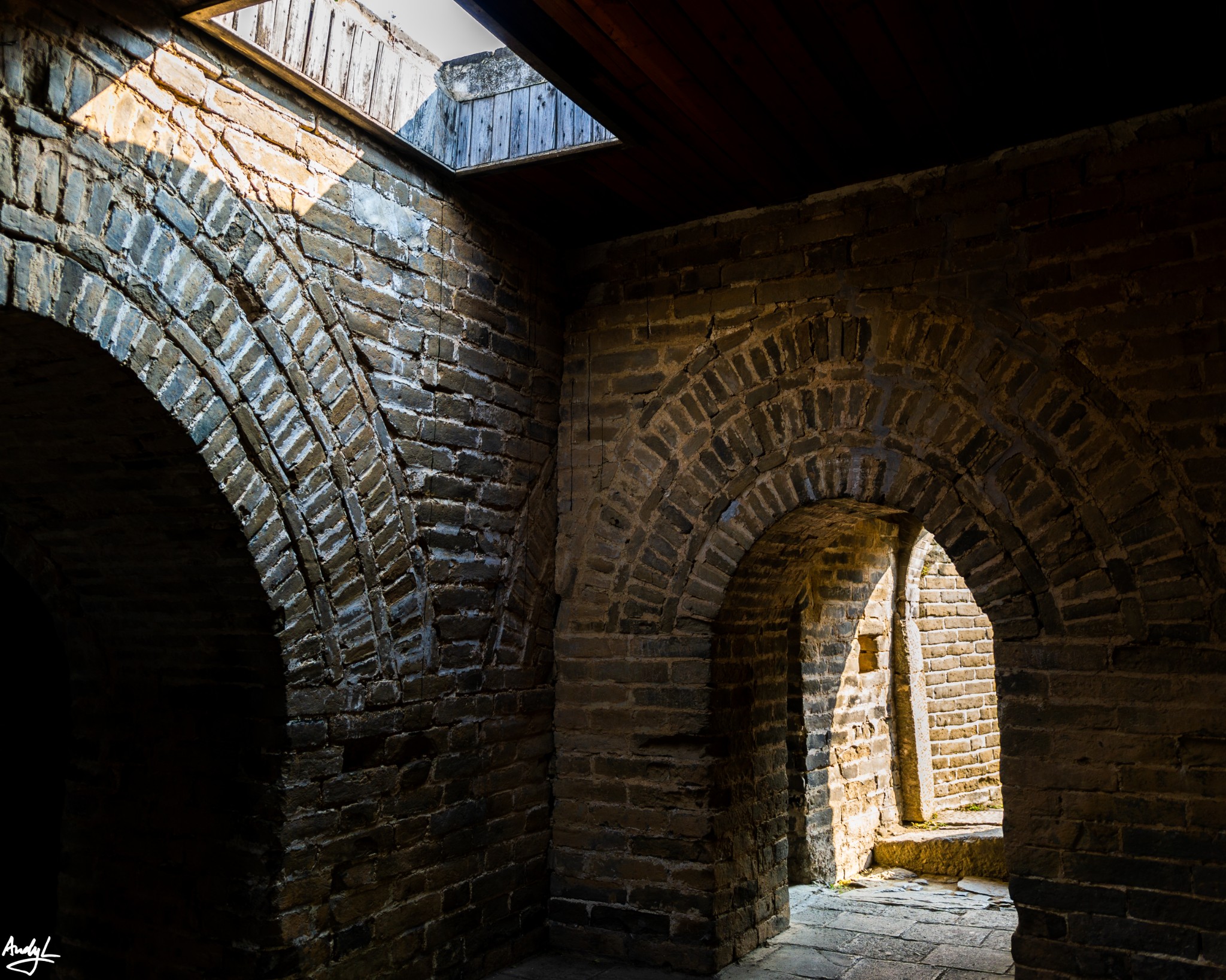 敌楼内部早已空空荡荡,失去了往日的作用。在过去,敌楼内部是存放武器装备和士兵居住的场所。