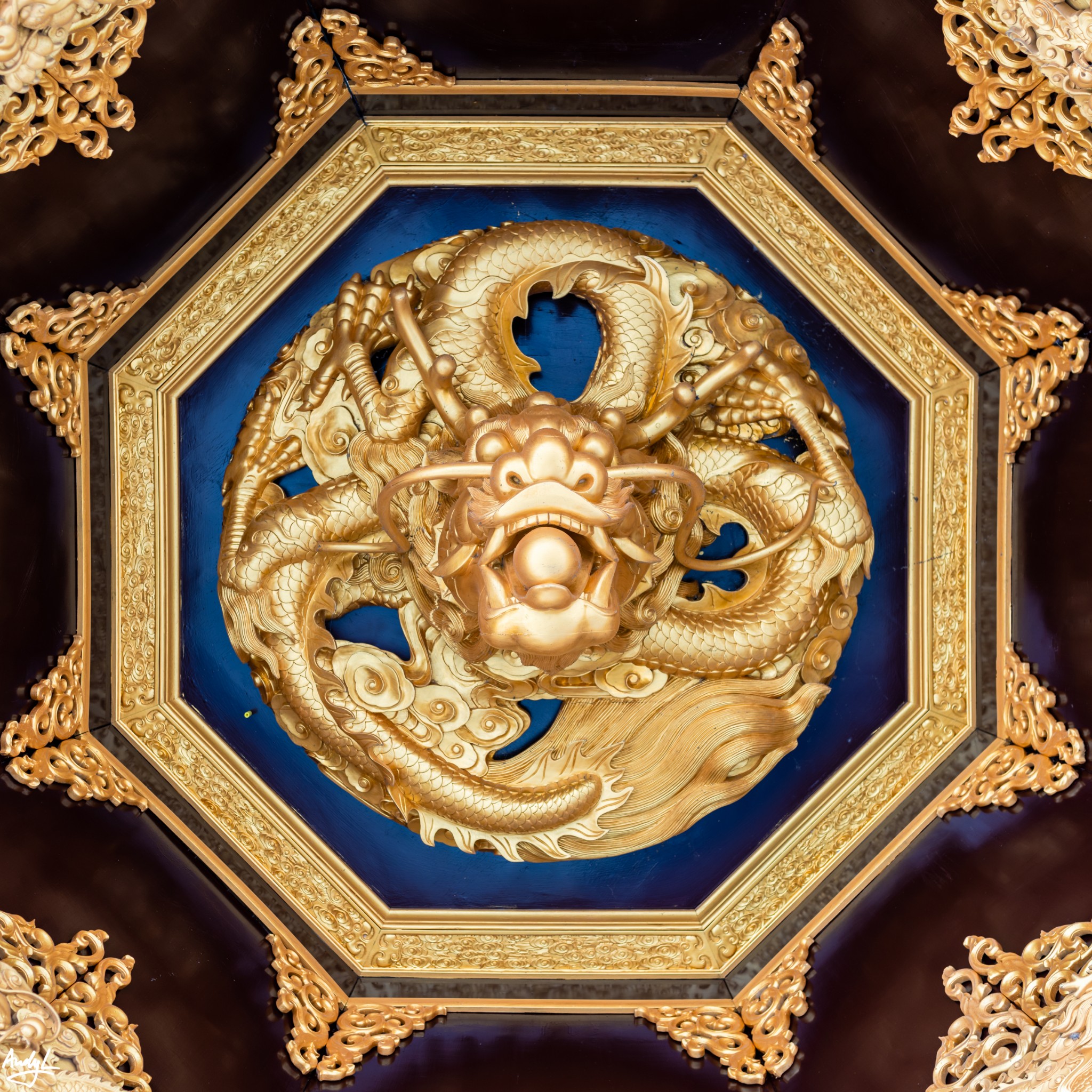 虽然亭子的外观十分普通,但是内部的穹顶雕龙却十分精美。