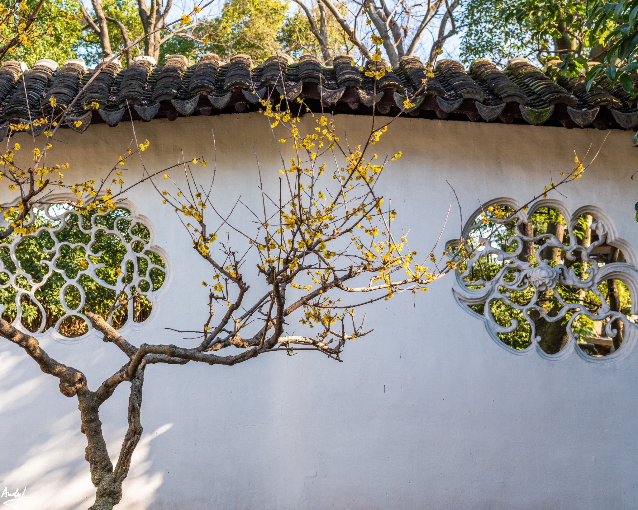 与拙政园等其他名园比起来,这座园子并不大,早晨阳光明媚,没有熙攘的人群,没有游客的喧嚣,十分安静(园内游客加上我不足十人)。