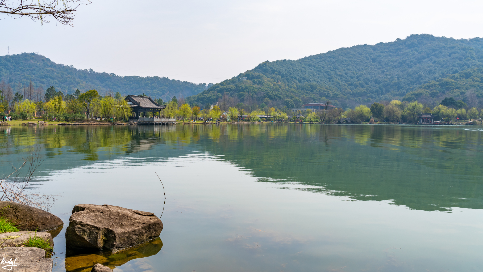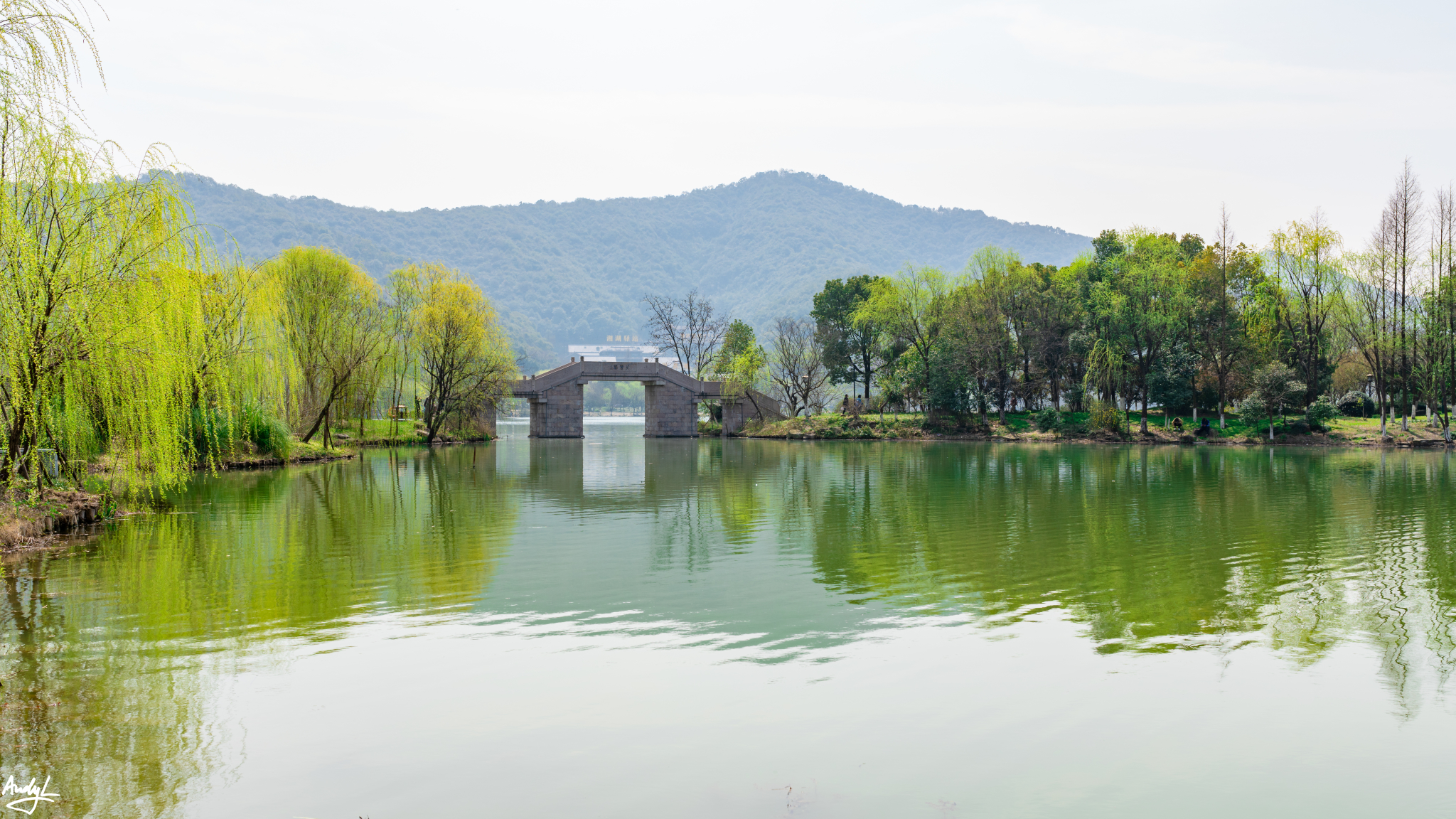 第一眼看到湘湖给我的印象出乎意料,湖边绿树成荫,湖边群山环绕,如果单看一张照片,不熟悉的人还会以为是西湖一角。