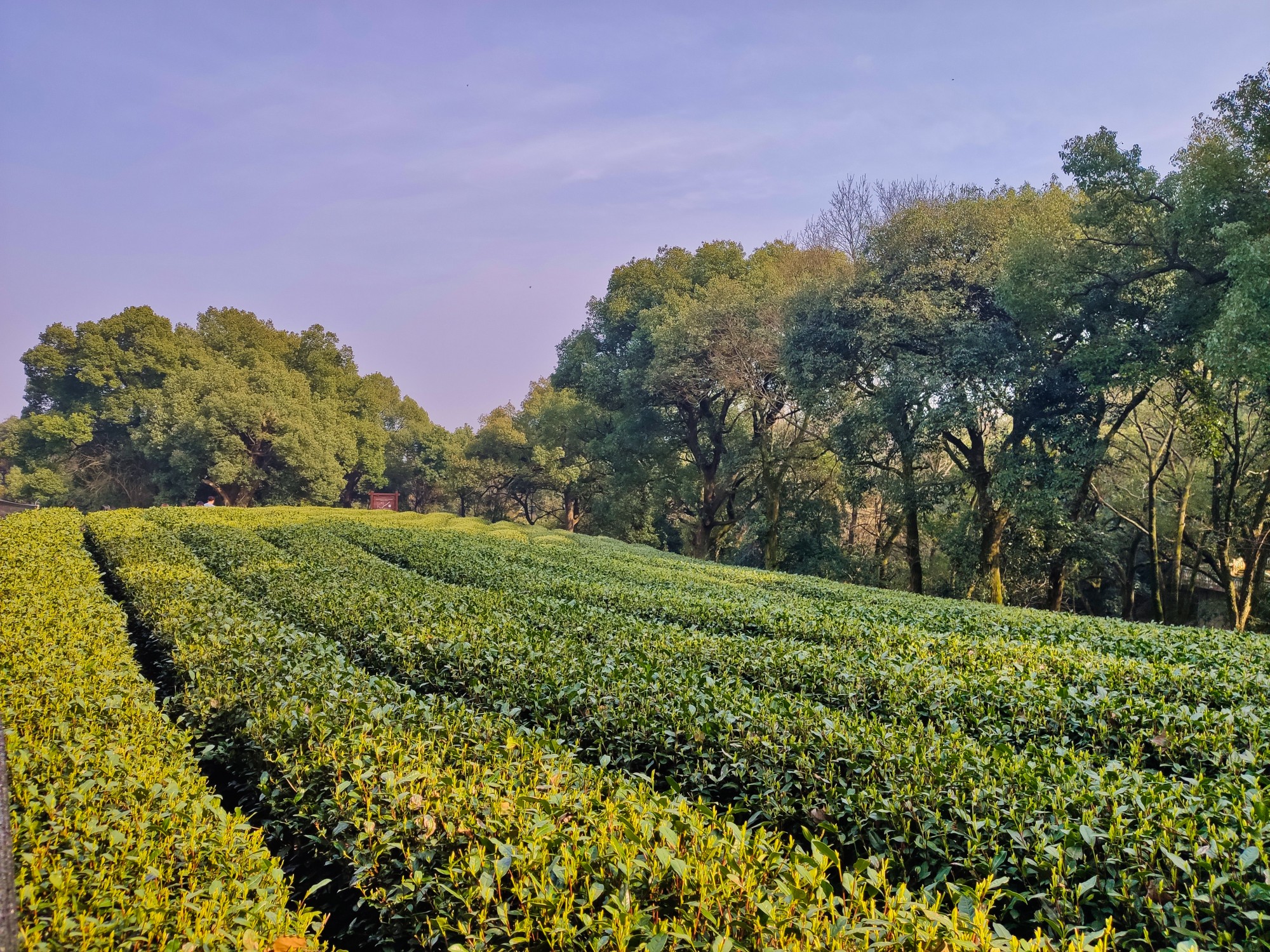 马上就要到了春茶上市的季节,茶园里一片绿色。山路的终点在九溪路口。