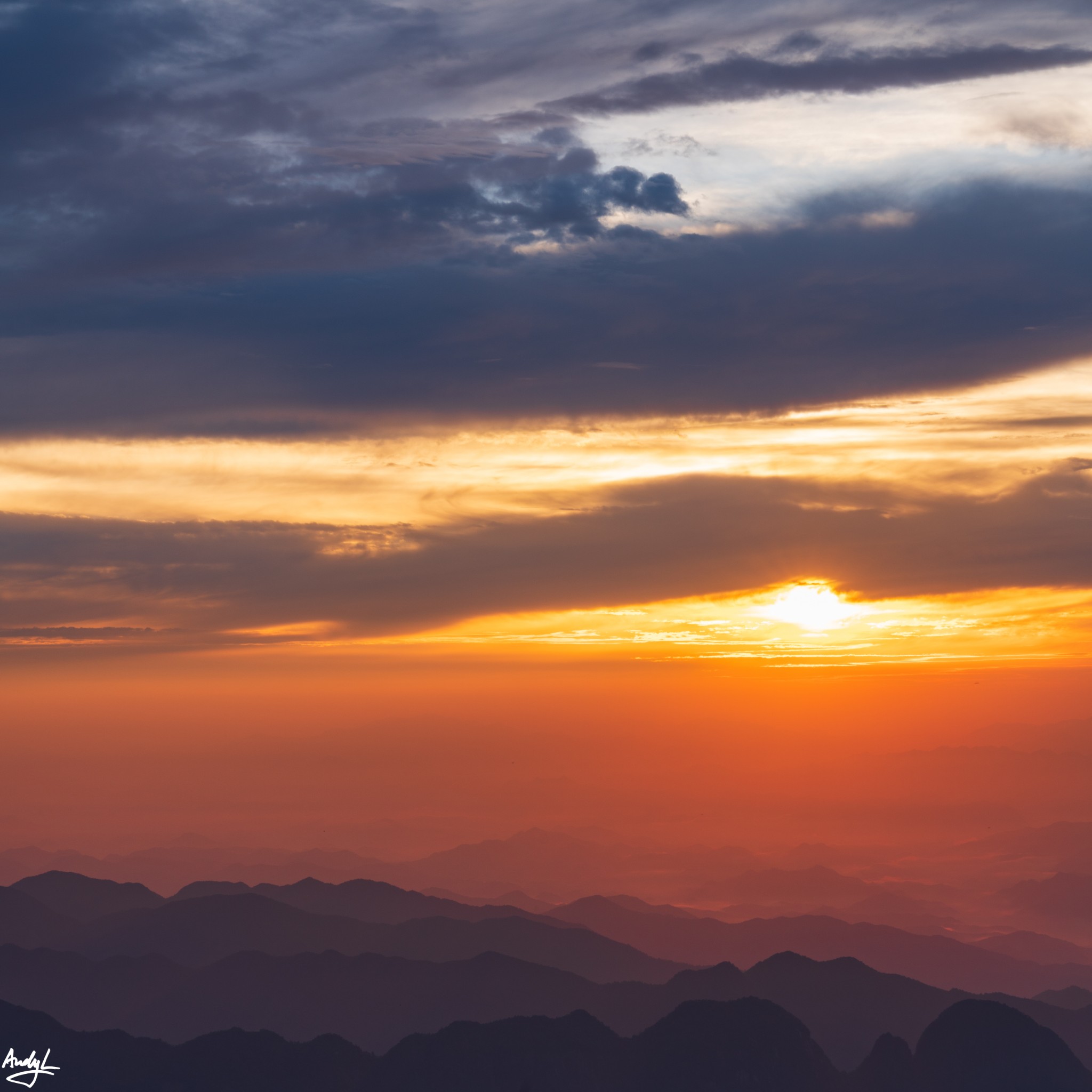 说实话,之前没有预料到是这样的一次日出,虽然作为“日出”,由于厚云层的关系,显得并不完美。但从另一个角度来说,正是因为这些厚薄不一的云层,朝霞成为了这次日出的主角。看着朦胧的远山,层次分明,竟有些水墨画的韵味。