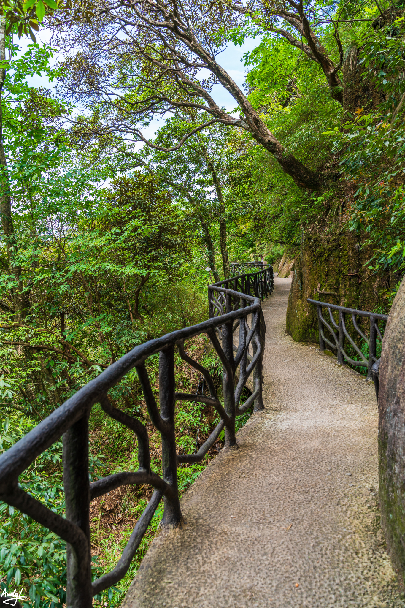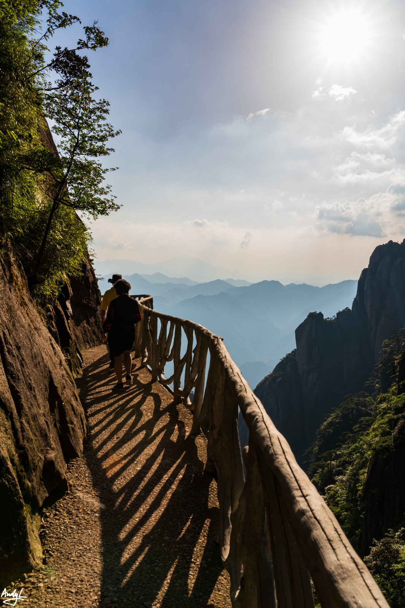 看完日出,回到酒店,吃完早饭,继续开始最后一天的行程,由于第一天爬的山路比较多,大家的消耗都比较大,所以第二天选择地势较低也非常平坦的东南栈道作为开始。从日上平台到东南栈道,基本不需要爬多少台阶。这条栈道是连接金沙索道和外双溪索道的捷径由于路比较好走,所以从这里经过的旅游团数量比较多。